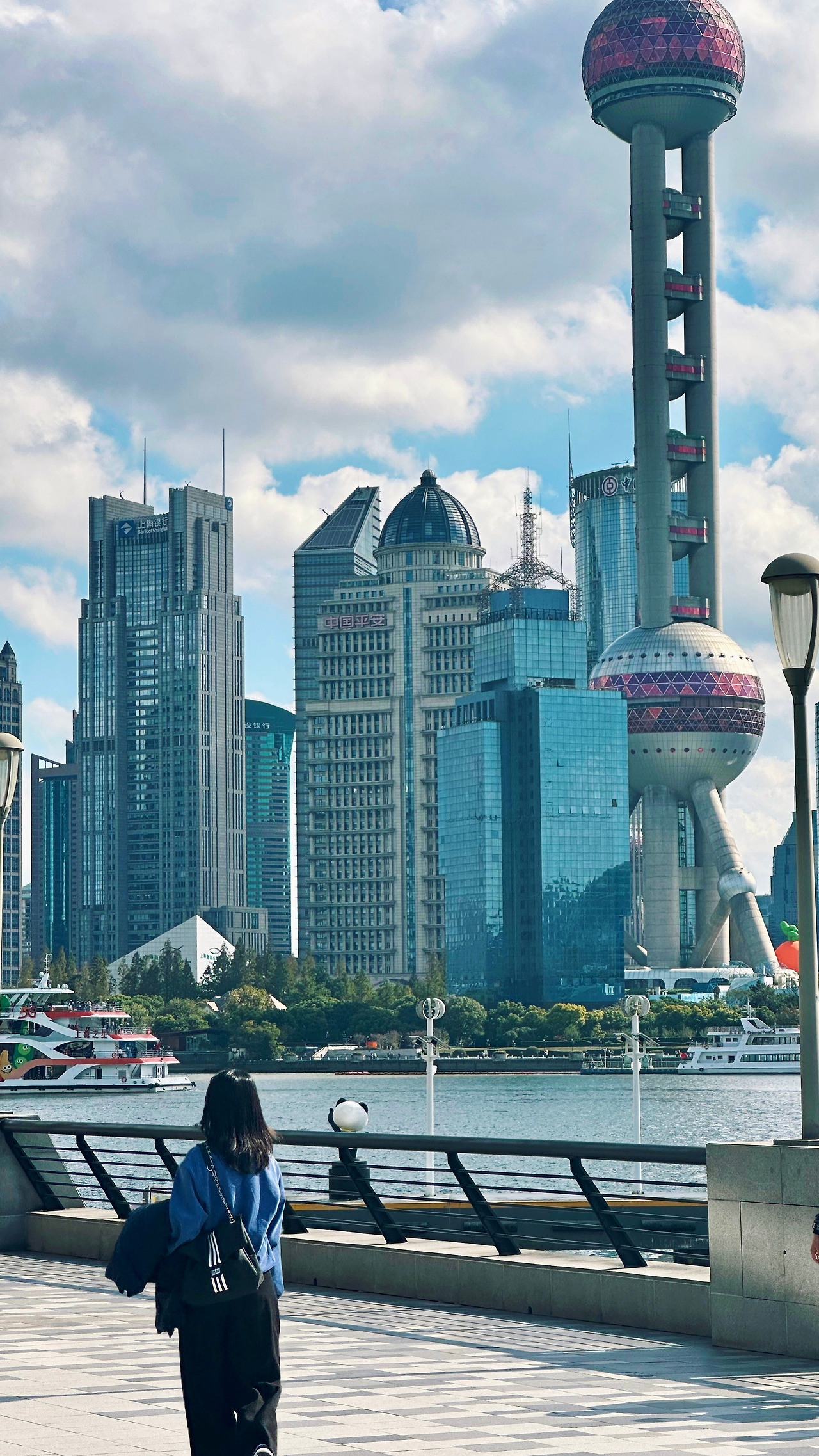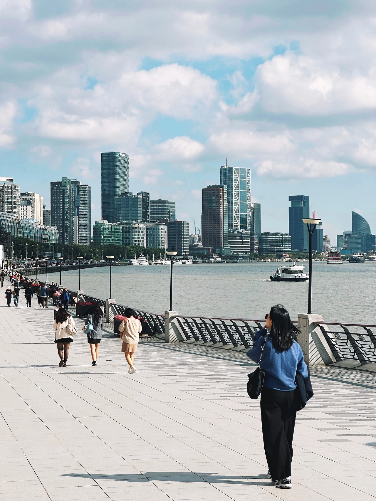강을 따라 이어진 푸강 빈강대로(浦江滨江大道, Pǔjiāng Bīnjiāng Dàdào) 산책로는 햇살과 바람이 잘 어우러진 길이었다. 호주의 시드니 서큘러 퀘이(Circular Quay)가 떠오를 만큼 넓고 정돈된 강변에는 여유롭게 걷는 사람들이 많았다. 우리도 그 흐름에 섞여 조용히 여유를 즐겼다.