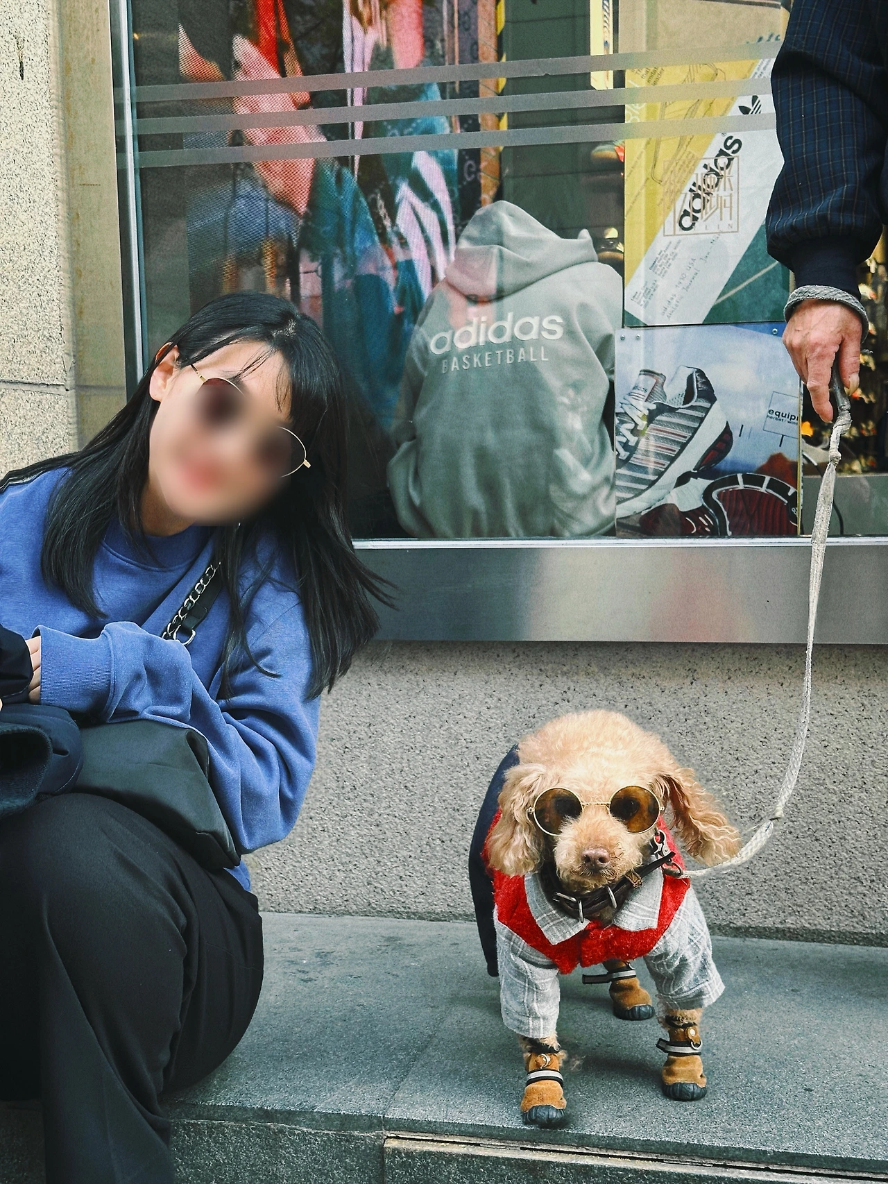 호텔로 돌아오는 길. 난징동루의 아디다스 매장 앞에서 뜻밖의 장면이 우리를 멈춰 세웠다. 작은 푸들 한 마리가 멋진 옷차림으로 그 자리에 서 있었다. 회색 체크 셔츠에 빨간 니트 베스트, 네 발엔 작은 신발, 그리고 동그란 선글라스까지. 거리의 주인처럼 여유롭게 서 있는 모습에 지나가던 사람들도 웃음을 지었다. 우리 역시 자연스럽게 그 앞에 멈췄고 결국 사진 한 장을 남겼다. 이름도 모르는 그 강아지는 여행 마지막 날에 가장 귀여운 추억을 남겨준 존재가 되었다.