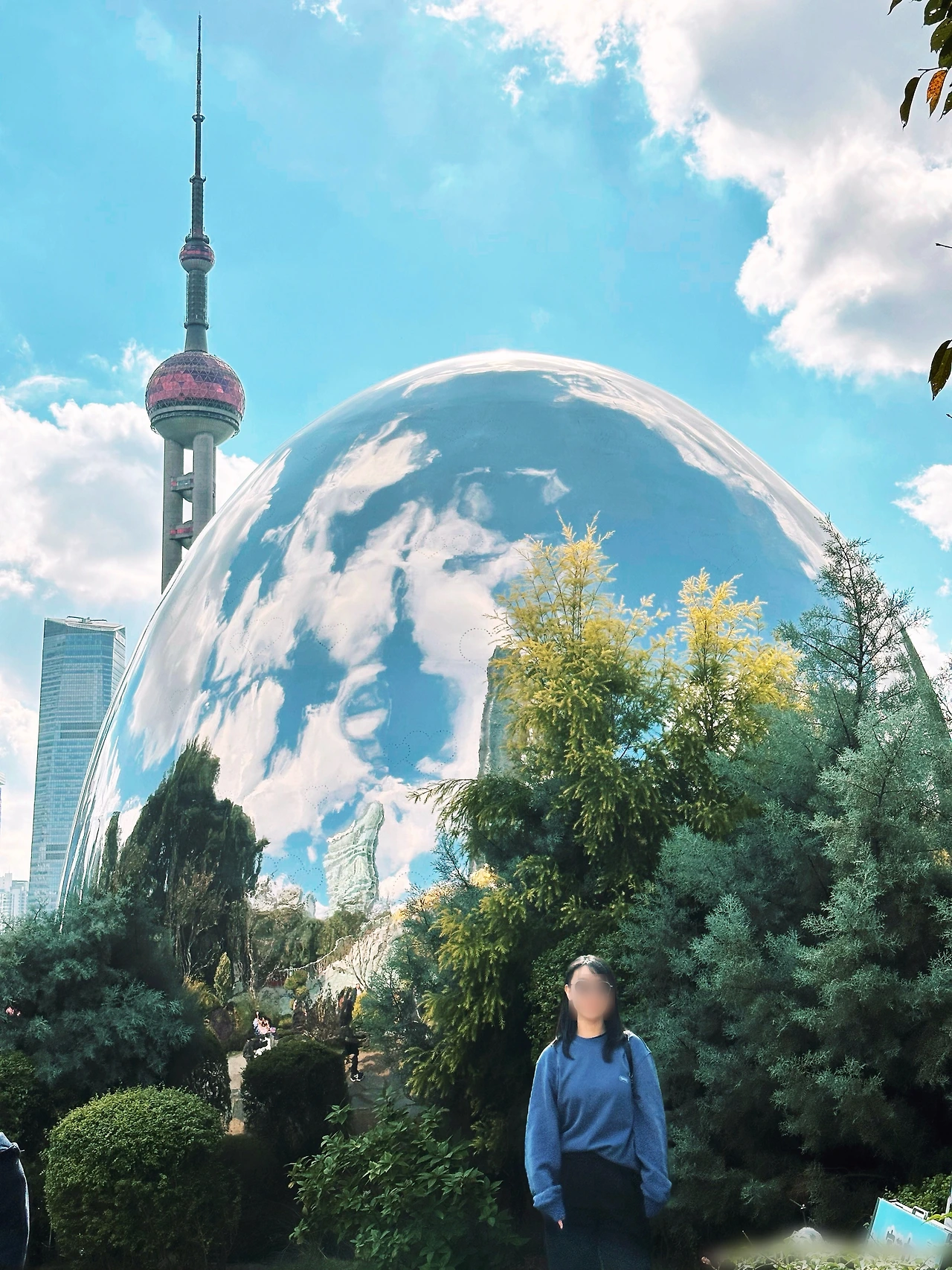 산책로 끝에 이르자 또 하나의 포토스폿, 거대한 거울돔이 모습을 드러냈다. 유리 표면에는 파란 하늘과 흰 구름이 고스란히 담겨 있었고 맑은 날의 풍경을 투명한 구 안에 옮겨놓은 듯 빛나고 있었다. 우리도 줄을 서서 기념사진을 남겼다. 햇살과 하늘, 그리고 마지막 날의 기분이 그 안에 함께 담겼다.