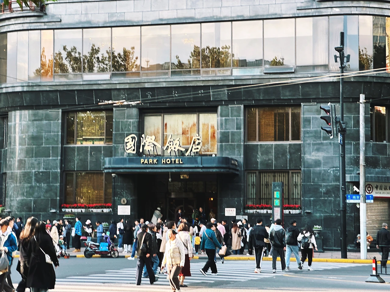 짐을 찾으러 숙소로 돌아오는 길. 여행 내내 몇 번이고 지나쳤던 파크 호텔(国际饭店, Guójì Fàndiàn)이 그제야 또렷하게 보였다. 파크 호텔 앞에서의 마지막 풍경은 마치 인사를 건네듯 잔잔했고, 우리는 그렇게 상해에서의 모든 순간을 마음속에 가볍게 담아 돌아왔다.