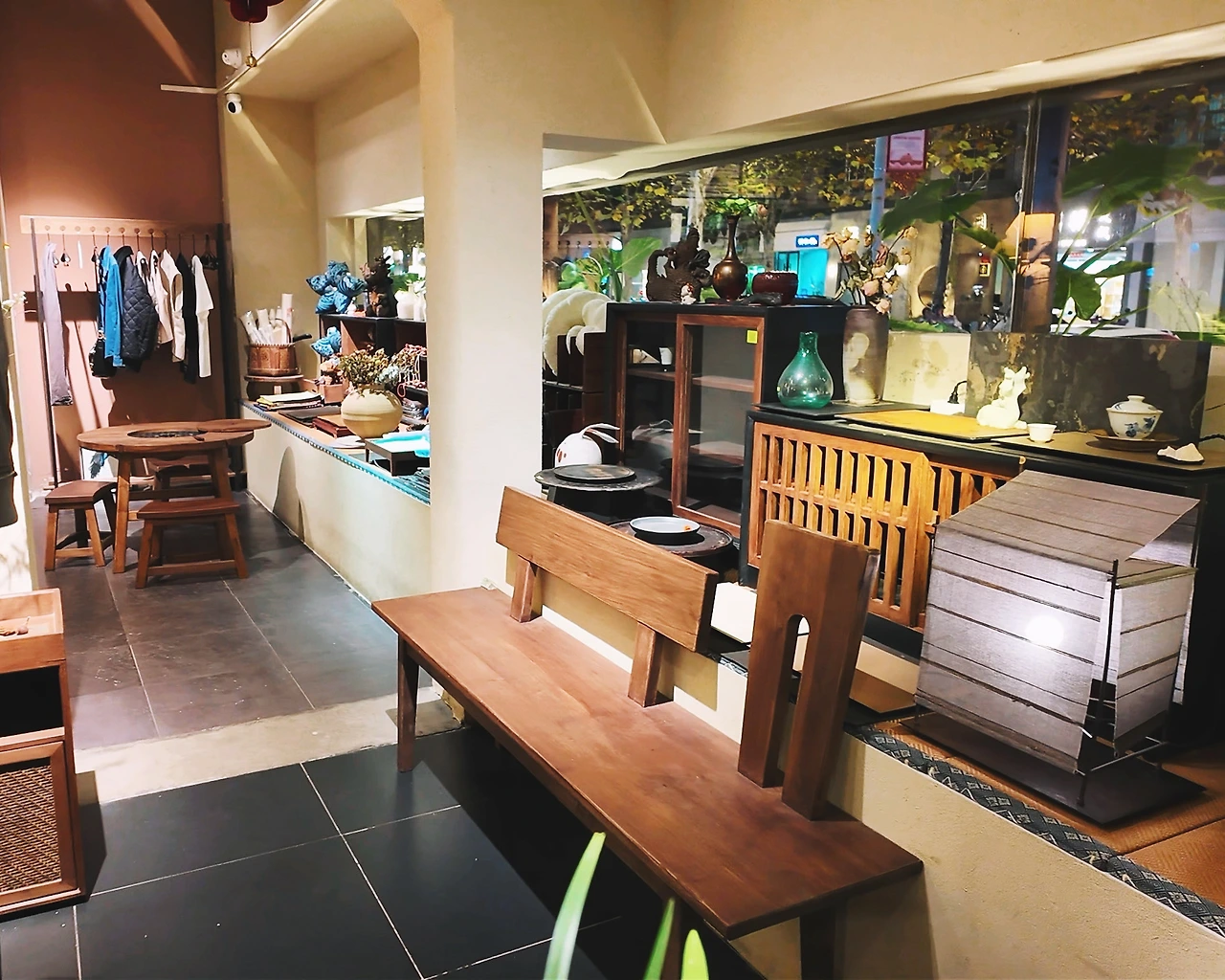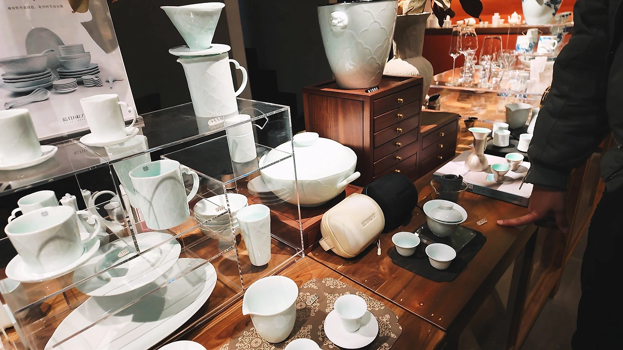 박물관 외에도 여러 가게와 전시 공간이 이어져 있었다. 그중 선시차방(鮮時茶坊, Xiānshí cháfáng)에서는 감각적인 도자기들이 눈길을 끌었는데, 청화백자 위에 테이프를 덕지덕지 붙인 듯한 ‘칠링 바스켓’이 특히 인상 깊었다.