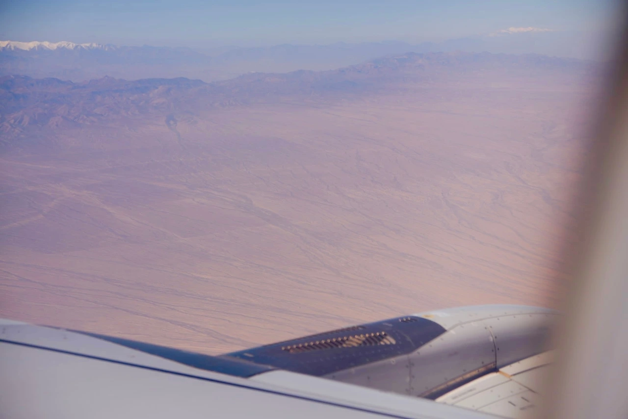 시닝에서 둔황(敦煌, Dūnhuáng)으로 넘어가는 날, 비행기는 초원을 지나 설산을 건너더니, 어느 순간부터는 끝이 보이지 않는 사막 위를 날고 있었다. 창밖의 풍경은 점점 단순해졌고, 설명이 필요 없는 장면들이 조용히 이어졌다.