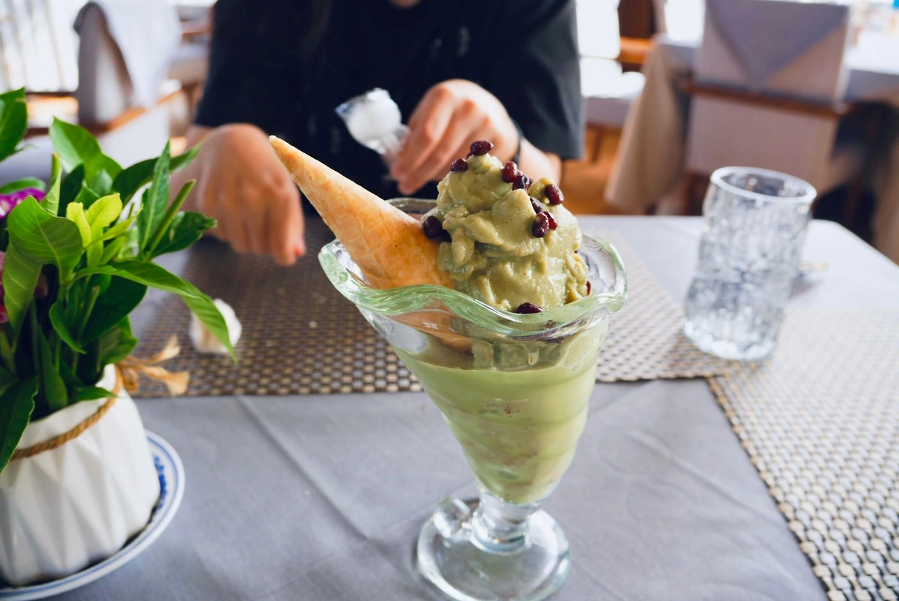 맥주 한 잔과 함께 메뉴판 사진이 예뻐 보이는 아이스크림을 주문해 잠시 앉았다. 안타깝게도 아이스크림은 보기에는 예뻤지만 맛은 기대만큼은 아니었다.