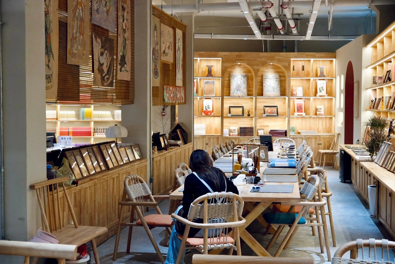 해가 기울 무렵에는 도심 쪽으로 발걸음을 옮겼다. 샤저우 야시장(沙州夜市, Shāzhōu Yèshì, Shazhou Night Market)에 가기 전, 소품샵과 서점들을 천천히 둘러봤다. 햇살이 깊게 스며든 소품샵에는 불교 미술을 모티브로 한 물건들이 놓여 있었고, 한쪽에서는 조용히 그림 수업이 진행 중인 듯했다.