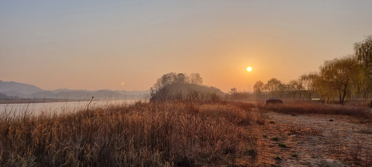 이른 아침 뜨겁게 붉은 태양 솟아오르네