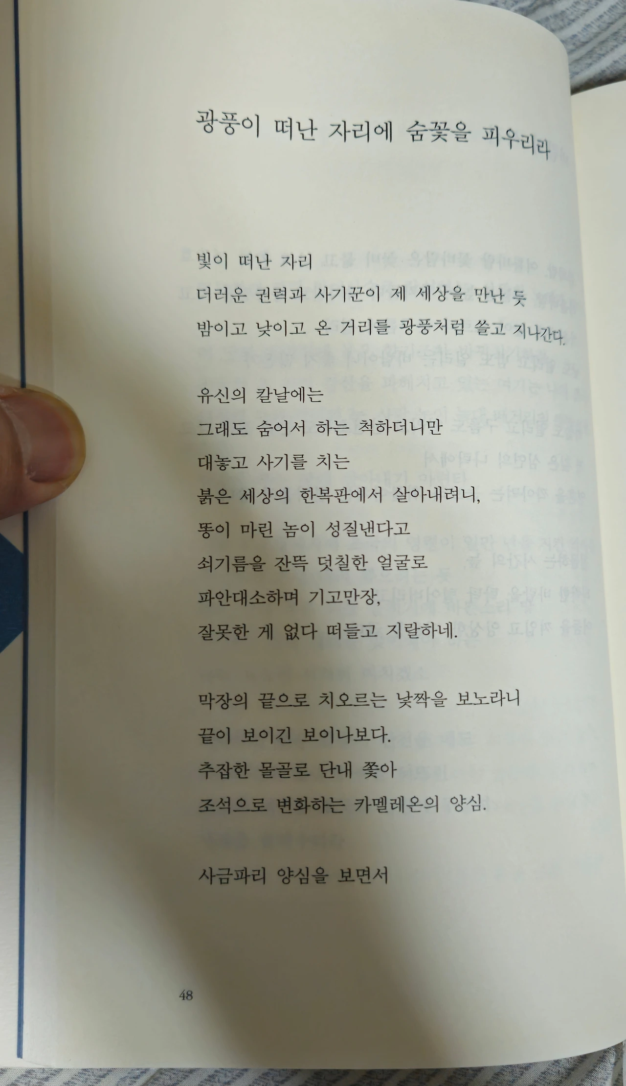 "광풍이 떠난 자리에 숨꽃을 피우리라"