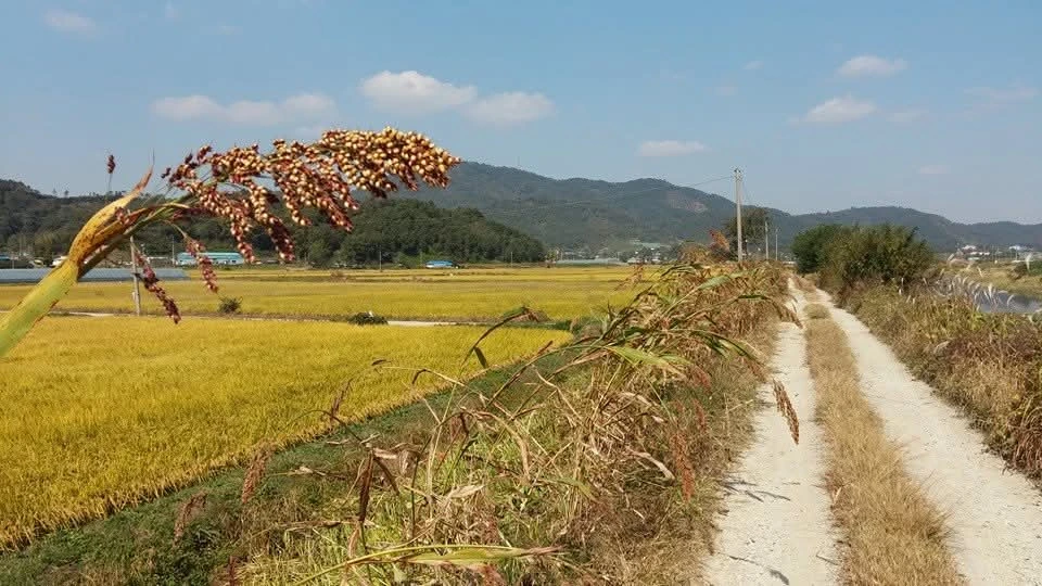 누런 황금물결 찬연히 고개 숙이네봄으로 누운 빛의 물결이 묵념하는 사이푸른 하늘에 기댄 오서산의 황토 빛 자유여훗날도 기억하고 앞날도 바람결에 영그네2014.10.15.조성범. 사진. 충남 내포 광천 오서산(790m)과 시골