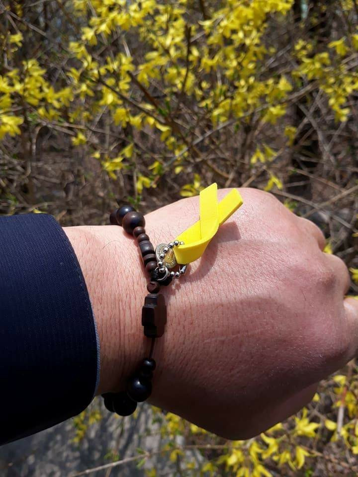 노란 마음 실린 묵주에 달린 세월호 리본
