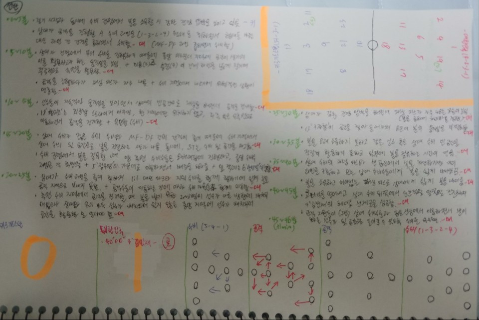 - 경기 도중 가장 위험한 장면이었음. 최종 수비라인(5백)이 횡으로 1자를 형성하였지만, 수비 뒷공간으로 움직이는 선수를 놓치면서 볼을 소유한 상대 선수가 오프더볼(Off-the-ball)의 선수에게 볼을 아무런 방해 없이 내어줄 수 있음. 패싱(Passing)이 정확했더라면 충분히 실점으로 이어질 수 있는 상황임.