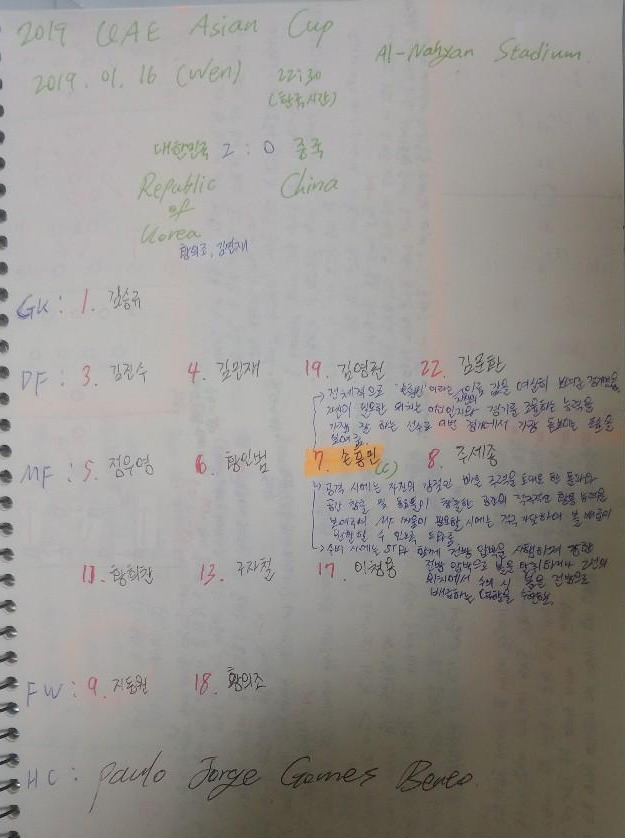 2019년 01월 16일 수요일 22:30(한국시간) 아랍에미레이트(UAE) 아부다비(Abu Dhabi)의 알 나얀 스타디움(Al-Nahyan Stadium)에서 2019 AFC 아시안컵 C조 3차전 대한민국과 중국의 경기가 열렸다.