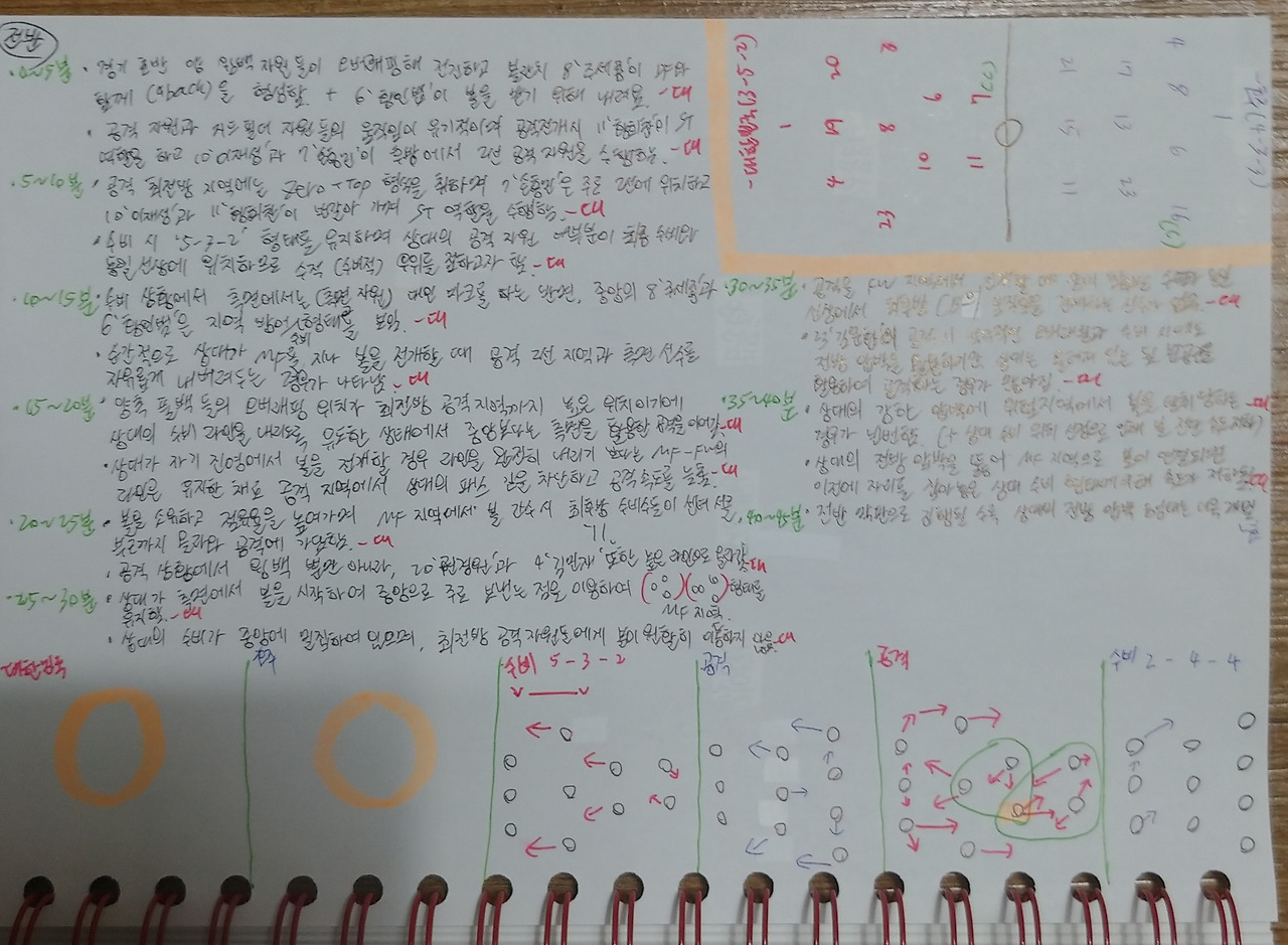 1. 코너킥 상황 마다 다른 전술을 활용한 부분이 인상 깊었음. 선수들의 배치와 키커가 볼을 찬 후의 유기적인 움직임을 기반으로 하여 여러가지 코너킥 공격 패턴으로 득점을 만들고자 하는 부분에서 세트피스 전술 많은 신경을 들이며 연습하였음을 알 수 있었음.