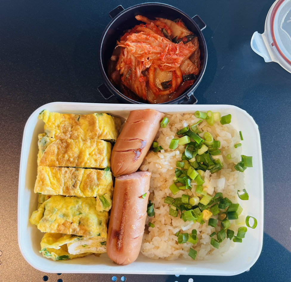 오늘은 남은 쪽파를 뿌려주고 사진을 찍고보니 색감이 좋아보이는 도시락이라 꽤나 뿌듯하다.