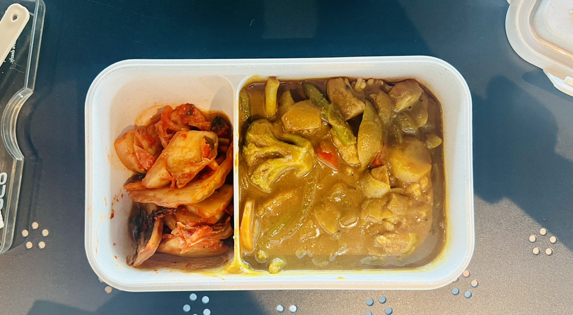 카레에 가장 잘 어울리는 시원하고 아삭한 김치와 도시락을 쌌다. 분명 맛있게는 먹겠지만 노오랗게 물든 도시락 통의 세척도 나의 몫이겠지.