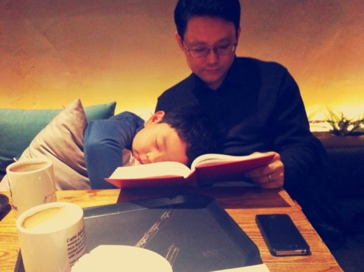 2012년 대선이 끝났을 때, 이 또한 우리 국민의 선택이니 세상과의 단절보다는 잠시동안의 셀프 힐링 시간을 가졌다. 아내랑 초4 꼬맹이랑 책 한 권씩 챙겨서 집 앞 카페에 갔다. 아내는 빅토르 위고의 <레 미제라블 2권>을, 나는 한나 아렌트의 <예루살렘의 아이히만>을 읽고 있었다. 꼬맹이 녀석이 살짝 졸렸었나 보다. 쿠션을 포근하게 살짝 안고는, 내 다리를 베개 삼아 이렇게 한동안 평온한 낮잠에 빠져들었다. 이 순간을, 평온한 일상을 아내가 폰카로 담았다.