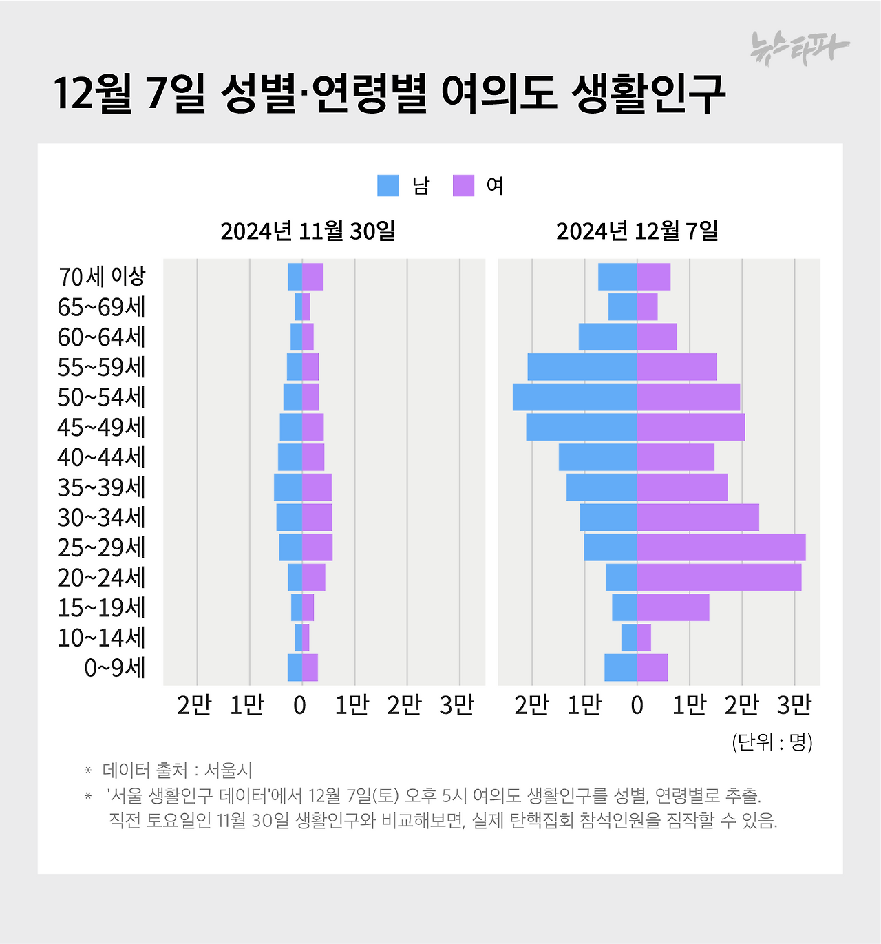 뉴스타파의 분석에 의하면, 12.7 여의도 탄핵집회 참석자는 최소 27만 명이고 20대 여성이 가장 많았음을 보여준다. 10~20년 내에 한국은 여성이 주도하는 나라로 변할 것으로 예측할 수 있는 의심할 수 없는 통계값이다.