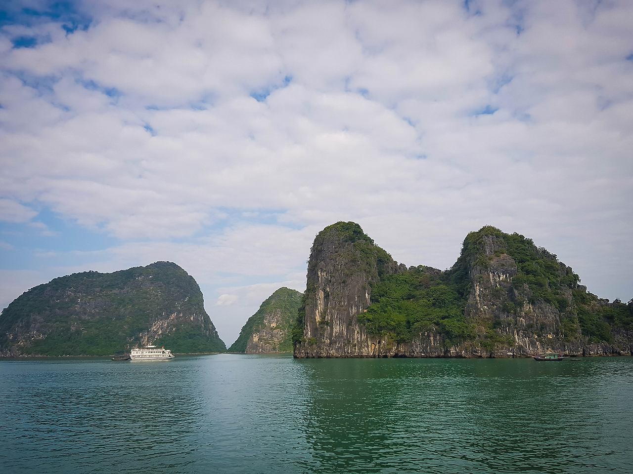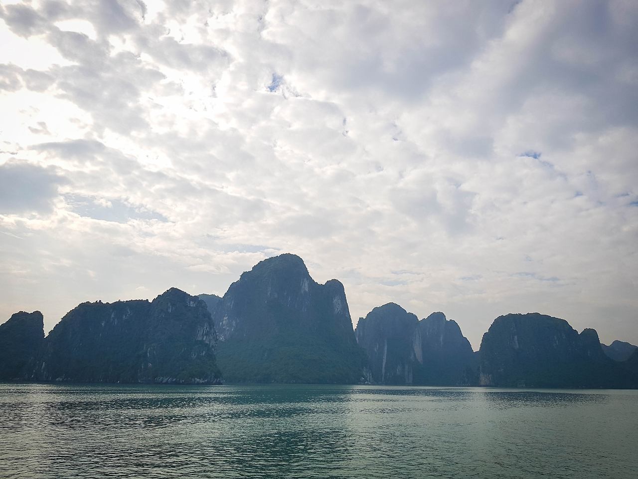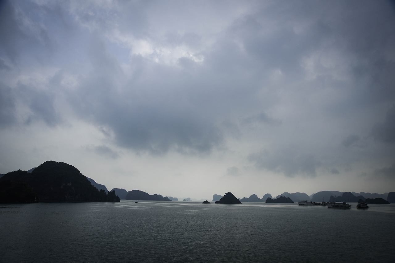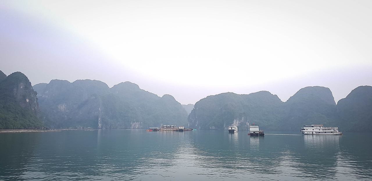 부두를 떠난 크루즈 선들은 마치 이순신 장군의 학익진을 흉내 내듯이 진을 만들며 부둣가를 출발하며 이틀간의 하롱베이 일정이 시작된다. 그 여정의 좌우로는 하롱베이의 많은 섬들이 마치 수묵화의 느낌으로 도열하여 여행객들의 안녕을 바라는 듯하다.