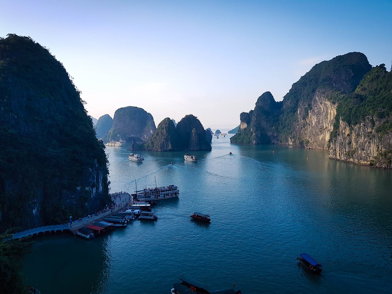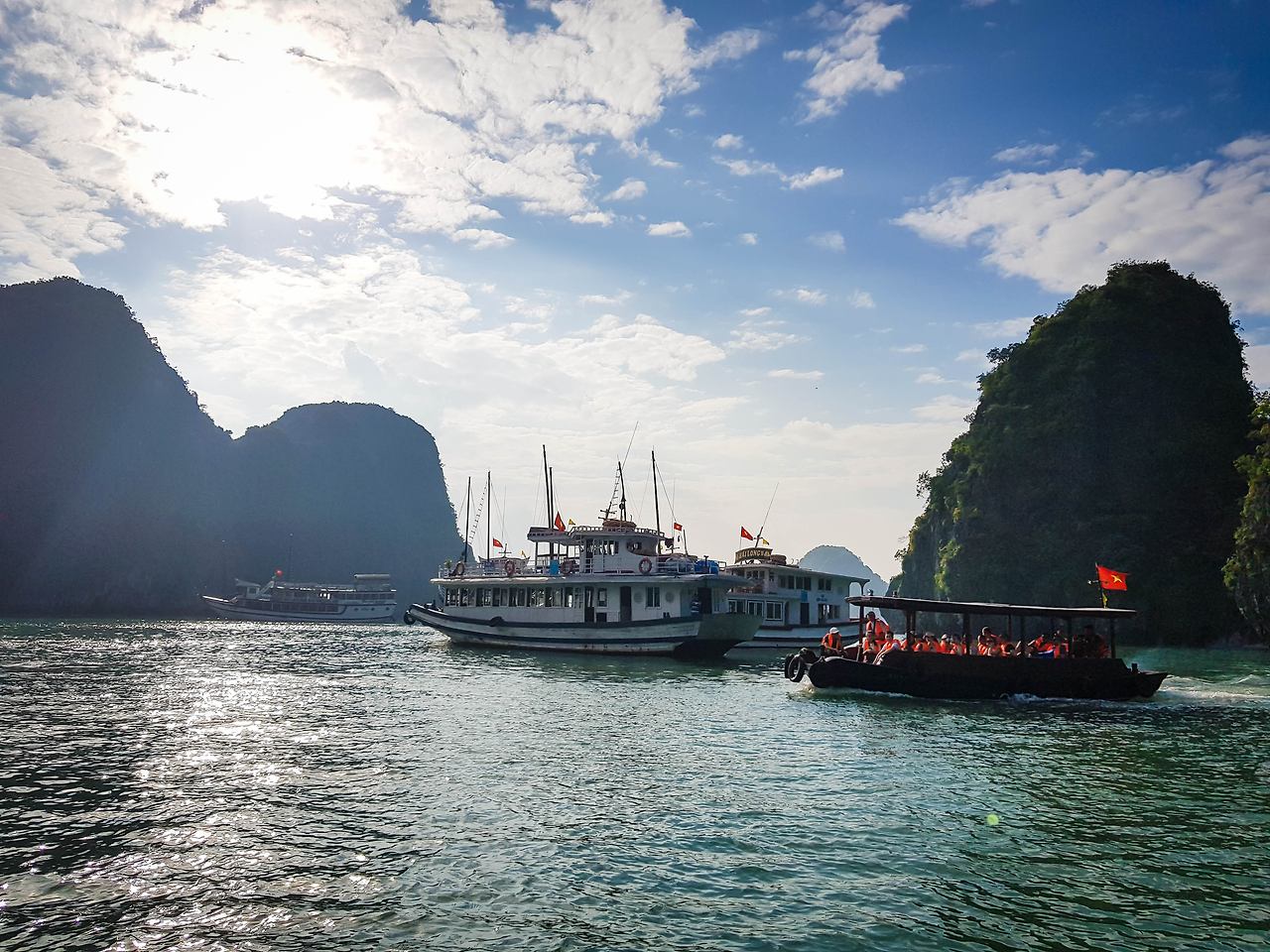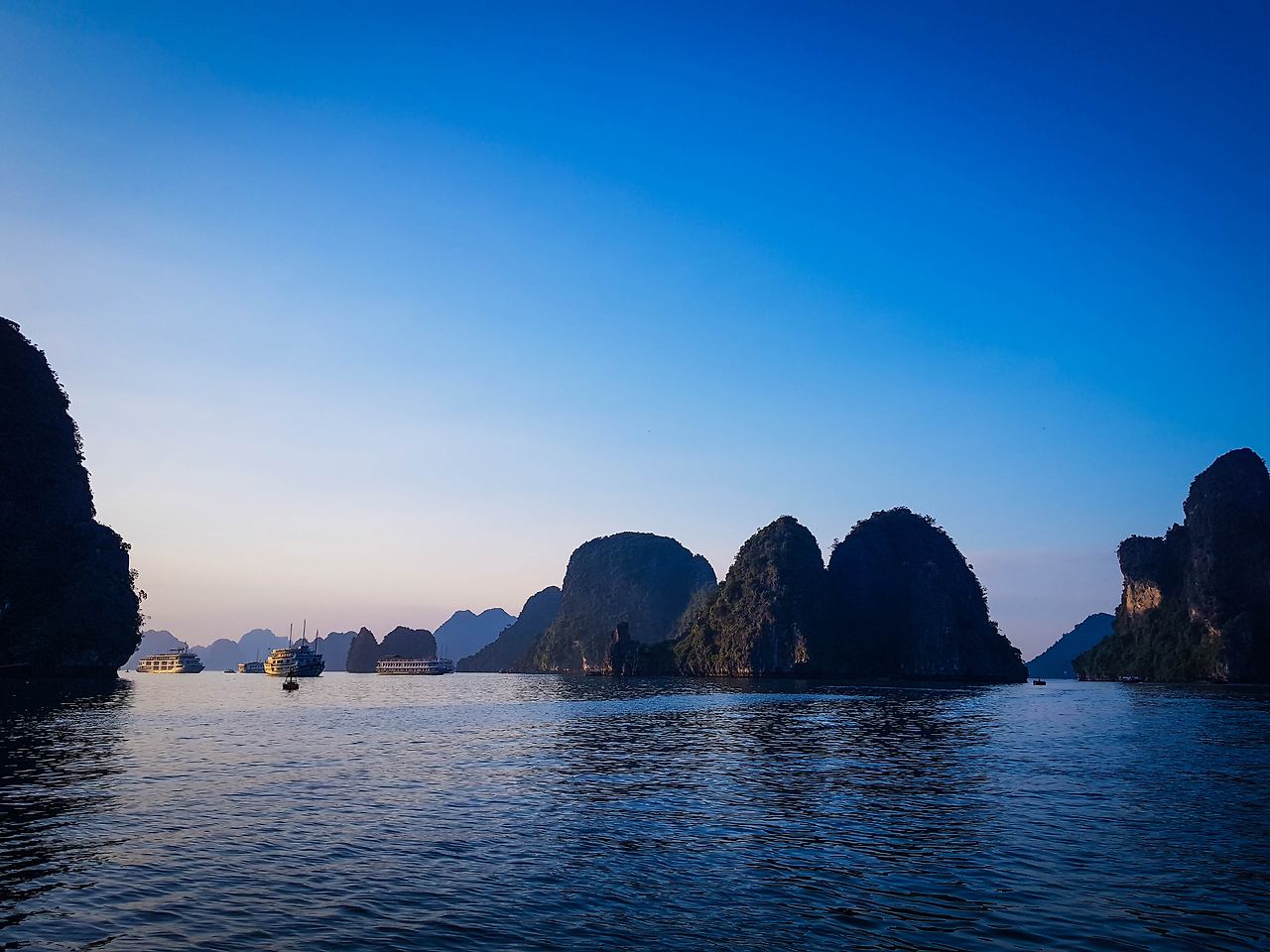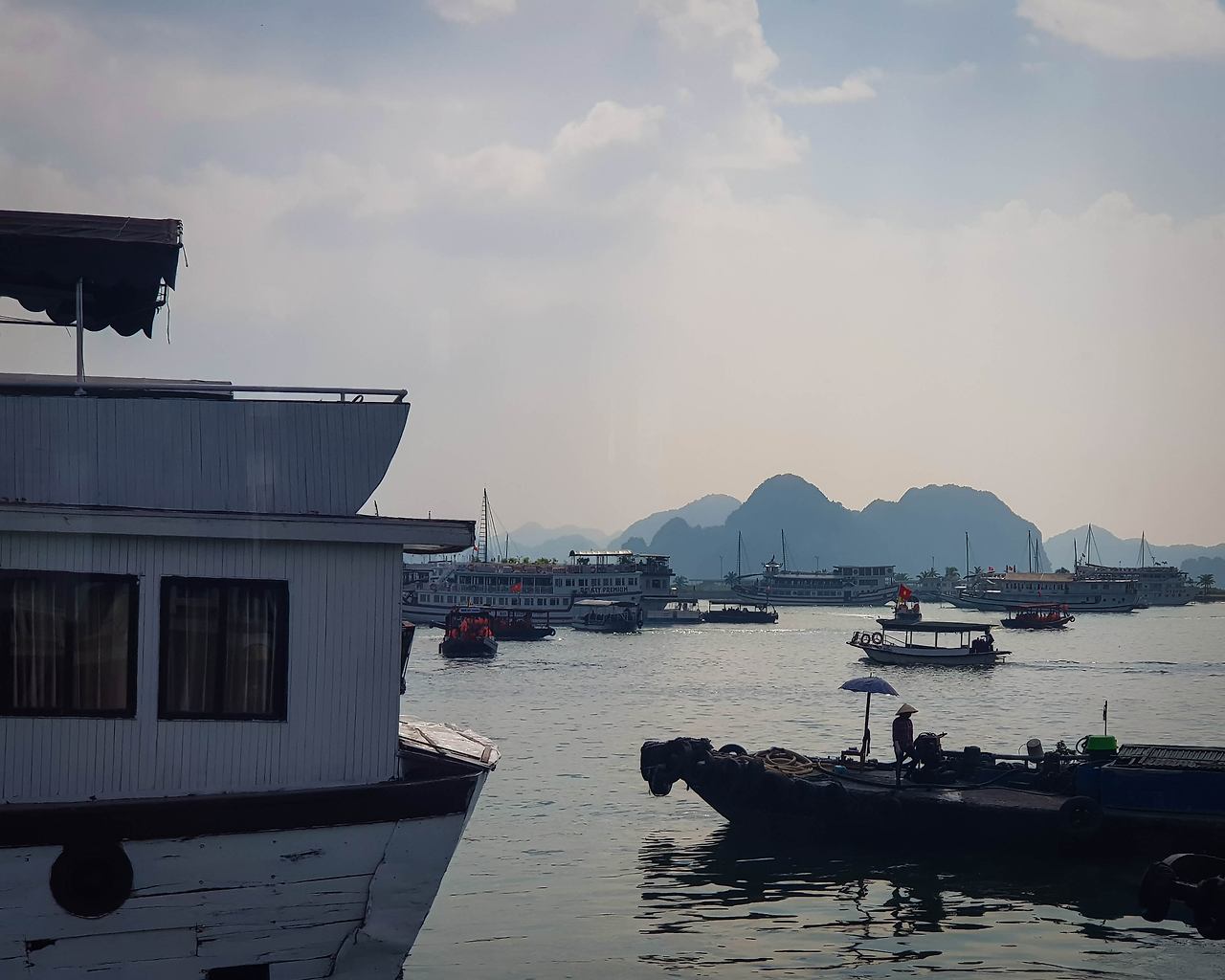 부두를 떠난 크루즈 선들은 마치 이순신 장군의 학익진을 흉내 내듯이 진을 만들며 부둣가를 출발하며 이틀간의 하롱베이 일정이 시작된다. 그 여정의 좌우로는 하롱베이의 많은 섬들이 마치 수묵화의 느낌으로 도열하여 여행객들의 안녕을 바라는 듯하다.