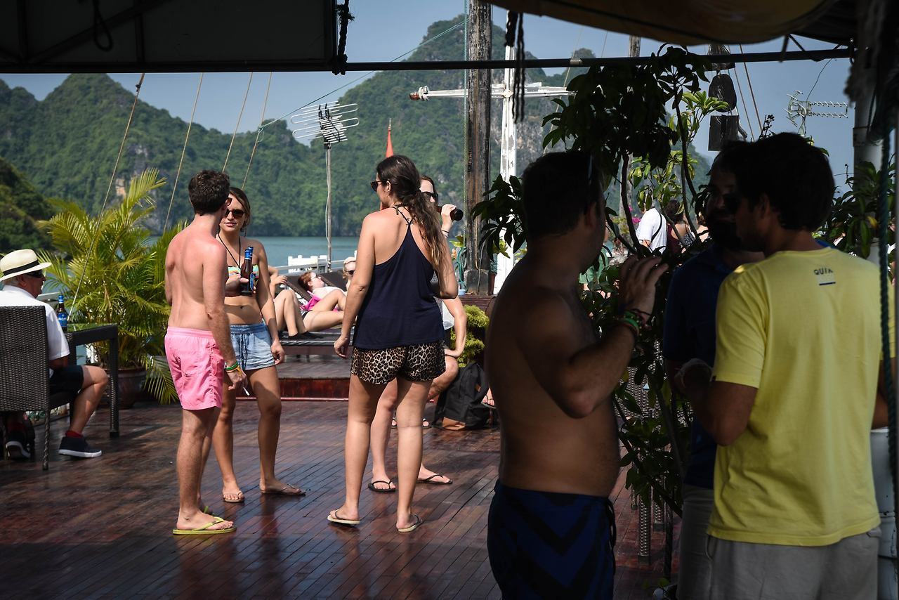 승선한 여행객들 거의 친구, 가족이 대부분인데 유일하게 혼자 여행을 떠난 이들은 인도네시아계 미국인 청년 필립과 홍콩계 미국인 수다쟁이 아줌마, 그리고 필자 본인 셋 뿐이다. 그래서인지 셋이서 유난히 많이 시간을 가지기도 했다. 필립은 이미 인도를 거쳐 라오스를 여행하고 국경을 건너와 베트남으로 넘어왔다 하고 수다쟁이 아줌마는 이곳 베트남을 시작으로 중국을 거쳐 홍콩으로 건너갈 예정이라 한다. 이렇듯 여행을 떠나보면 비슷한 사람들과 만나게 되더라 여행에 대한 비슷한 관념, 관점을 가진 사람들과 이야기를 하다 보면 참 많은 것을 배우기도 한다. 어떻게 여행을 시작했는지부터 이야기가 나오게 되며 지금 자신들이 살고 있는 세상의 이야기 그리고 앞으로 어떤 여행을 할 것인지에 대한 계획까지 얘기를 듣고 나누다 보면 나만 미친놈이 아님을 절실히 깨닫는 시간을 가지게 된다.
