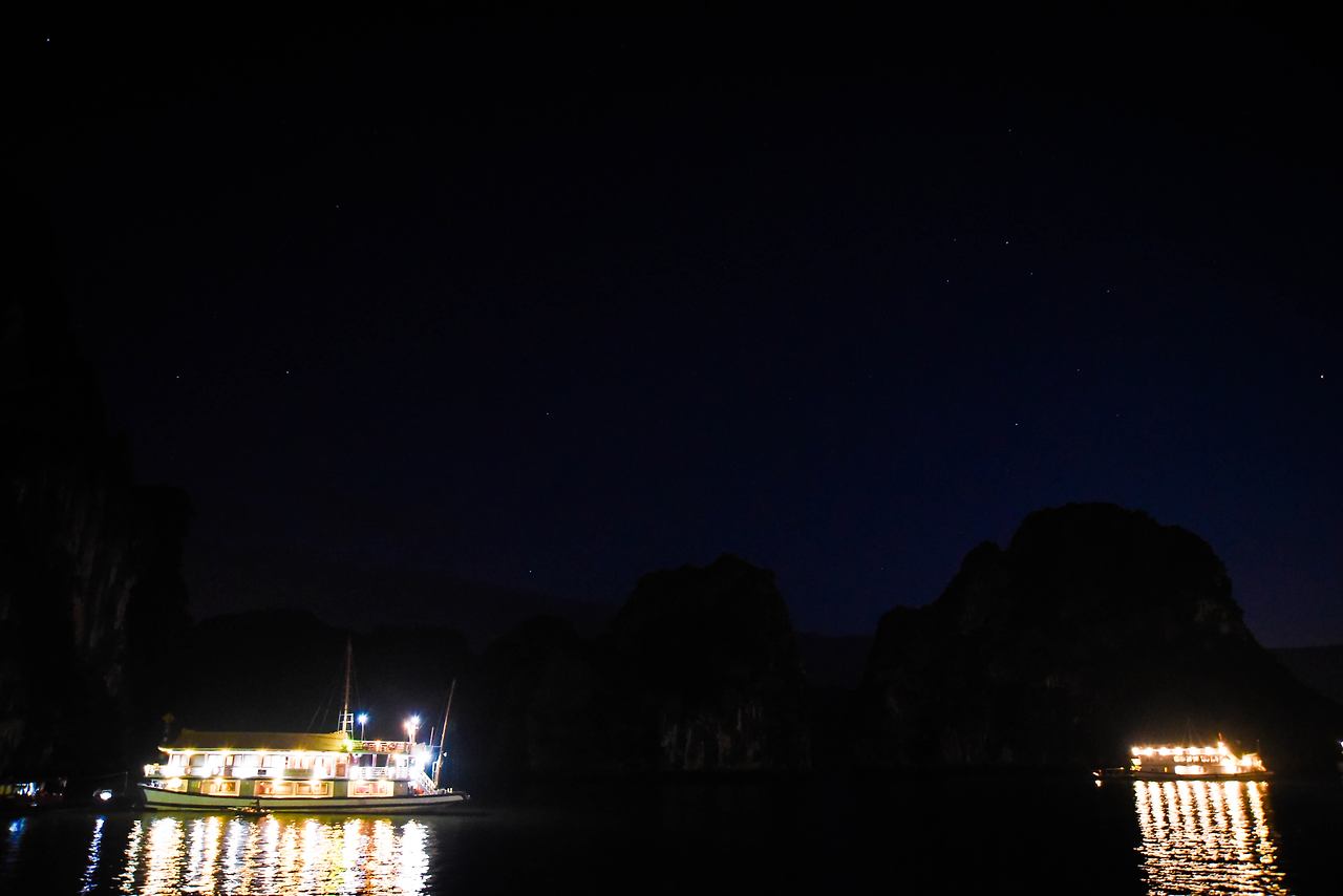 짧은 시간이 선상파티의 시간이 끝나고 한잔이 아쉬운 사람들은 Bar에 남아 하롱베이의 고요한 적막을 안주삼아 한잔씩 더 기울인다. 그렇게 하롱베이의 밤바다에는 배에서 나오는 불빛이 바다같이 칠흑 같은 밤하늘엔 밤 별이 그 빛을 더해만 간다.