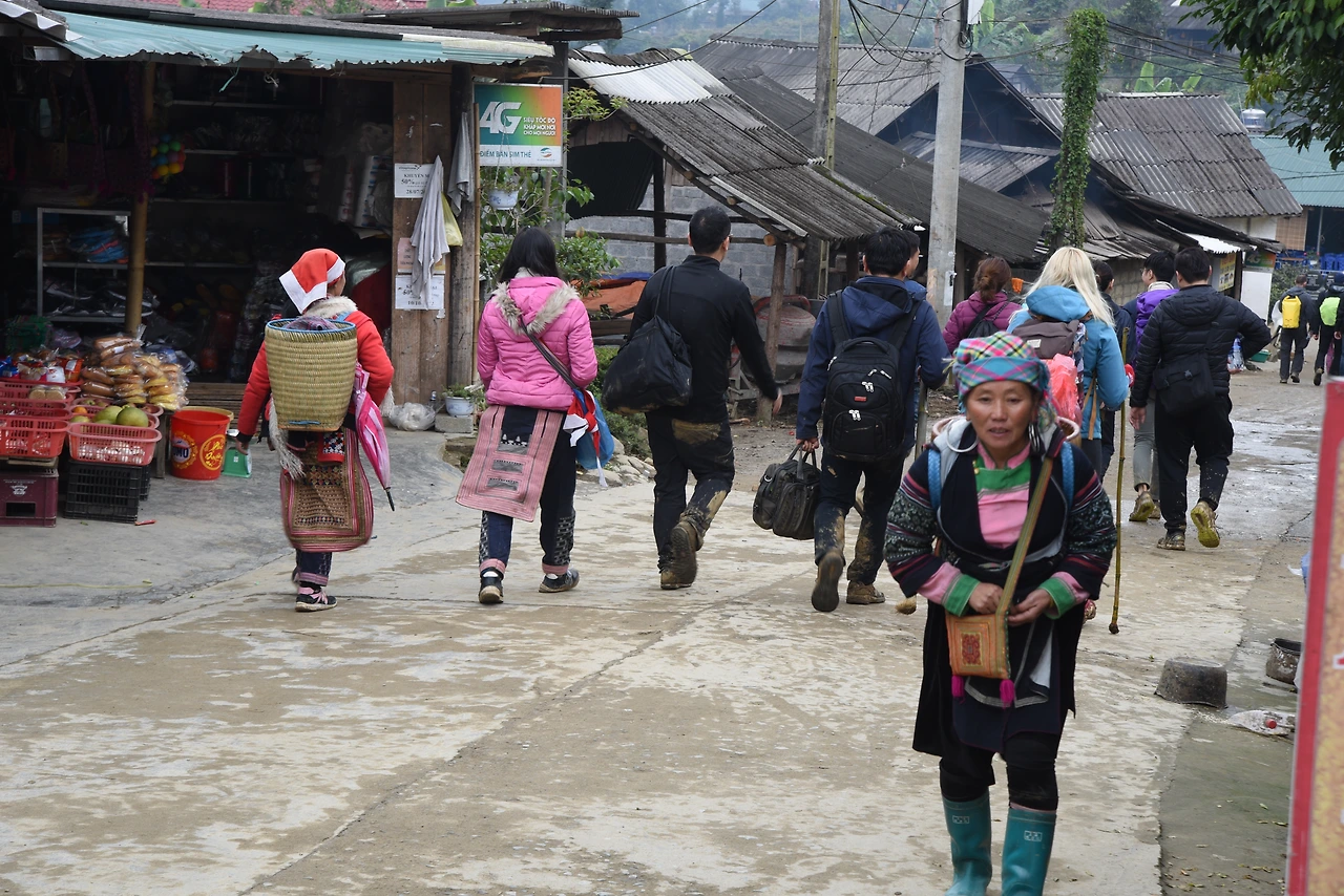 이 곳은 레인보우 흐몽족의 집단촌으로서 가파른 언덕에 길을 내고 집을 짓고 하나의 마을을 이루어 살아가고 있으며 메인 타운과 가까운 탓인지 토속적인 생활의 모습을 보여준다기보다 기념품을 판매하는 쇼핑타운의 느낌이 짙더라