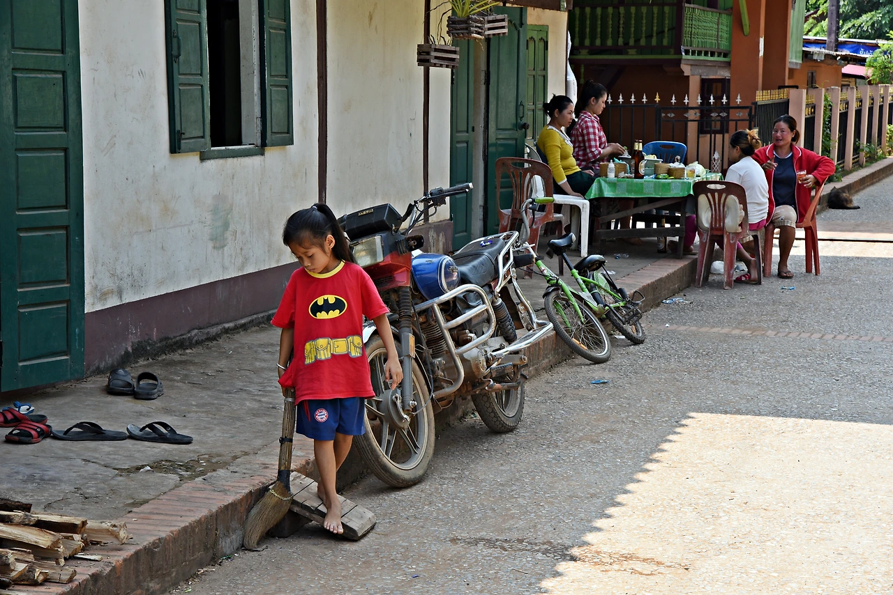 너무나 라오스 같은 마을, 자연스럽게 뛰 노는 아이들, 낯선 외국인이 조금은 신기한 듯 쳐다보는 사람들