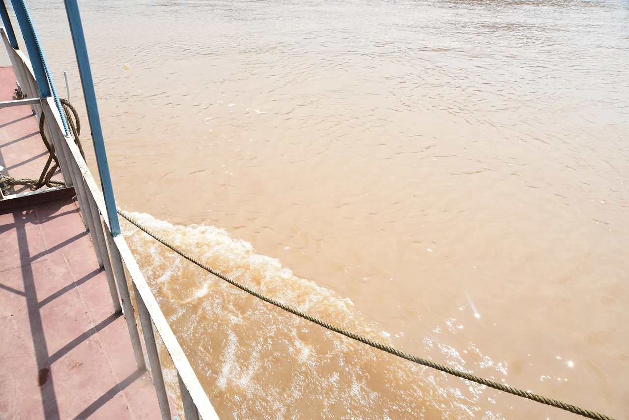 그렇게 올라탄 배에는 덤프트럭 부터 1톤짜리 트럭에 스쿠터가 20대 가까이 올라타고 탑승 인원만 거의 30명이 넘어간다. 배의 갑판까지 물이 찰랑찰랑 하는데도 아무렇지 않다는 듯이 배는 후진을 하고 건너려 한다.