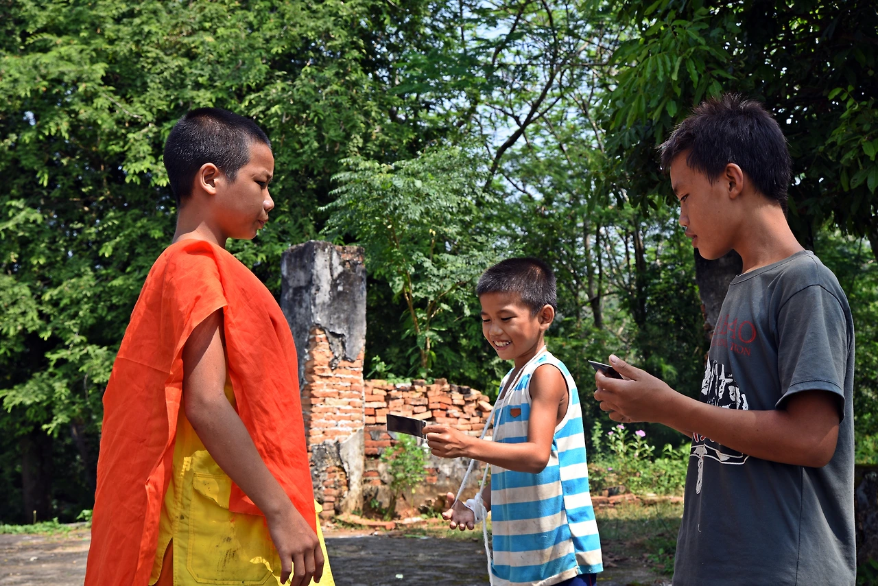 그렇게 있다 보니 꼬마 스님도 나오고, 동네 아이들이 다 올라온다. 다오가 자기의 사진을 자랑질을 하고 나니 내 앞으로 아이들이 줄을 선다. 자기들도 한장 찍어달라 이건 거지.. 그래, 어차피 그럴 요량으로 갖고 온 카메라 이니 좋다. 하나씩 세워 놓고 사진에 담아 준다. 그러고는 메인 카메라로 한 장씩 담으려니까 금방 있던 여자 아이들은 수줍은 듯 어디론가 도망가 버리고, 꼬마스님과 다오, 그리고 똥그란 얼굴의 귀여운 녀석이 남는다.