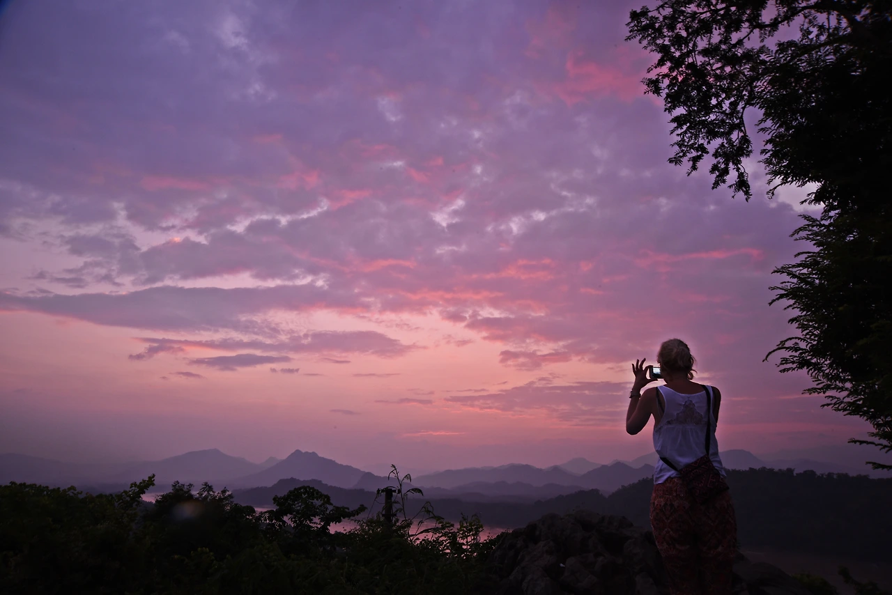 아마도 조금만 더 있으면 루앙프라방에 여행 온 모든 여행자들은 거의 다 올라올 것이다. 하늘의 느낌을 아는 사람들이라면.....이라고 생각하고 있는데 하나둘씩 턱 밑에 찬 숨을 내 뱉으며 올라오고들 있더라.