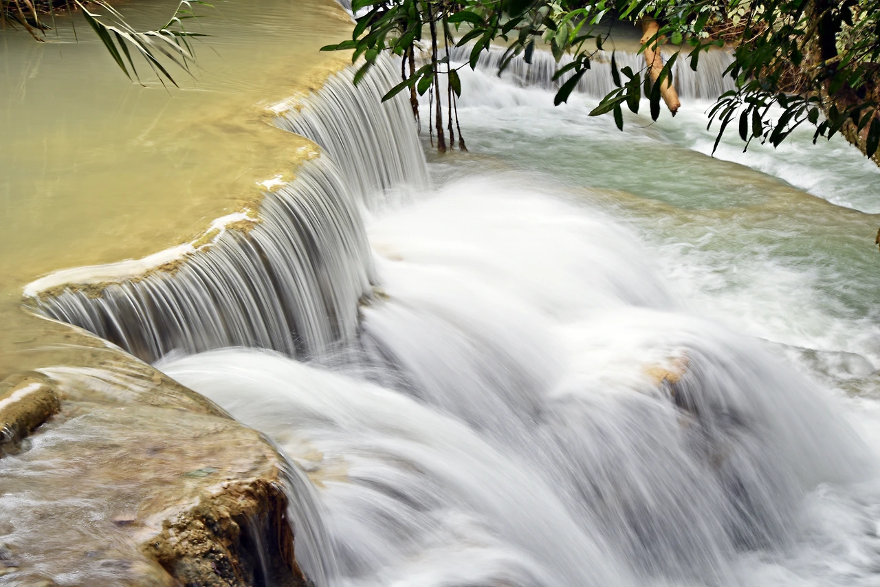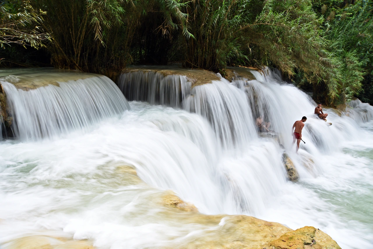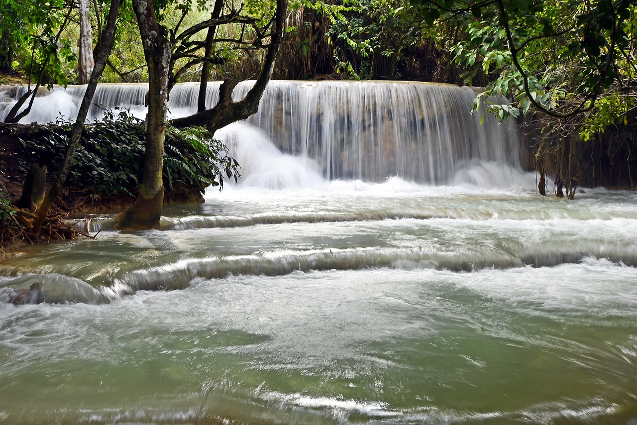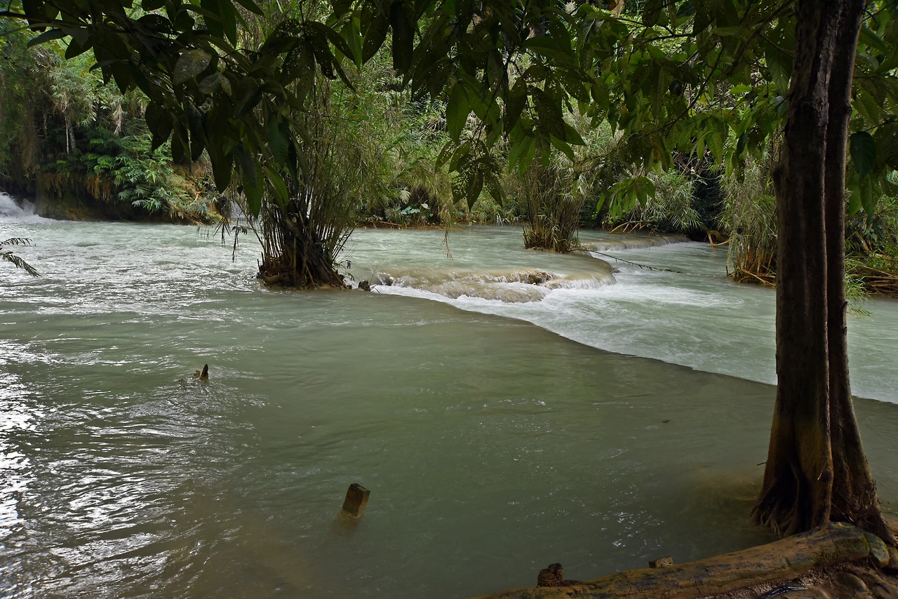 우기 끝물의 꽝시 폭포 계곡은 말 그대로 물이 가득하다. 그 소리와 물줄기의 위용은 엄청났을 정도로 컸다.