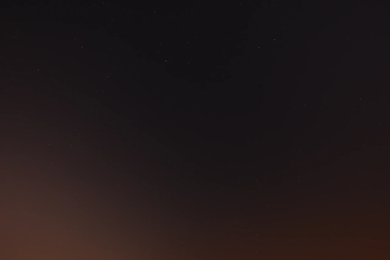 빛이 전혀 없는 야간시간 하늘의 별 사진, 주변 도심에서 들어오는 빛으로 인해 많은 별은 담기지 못했지만