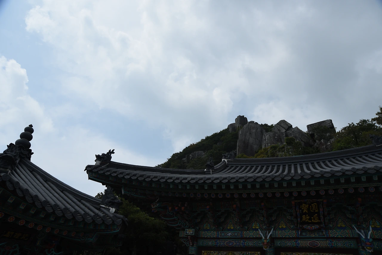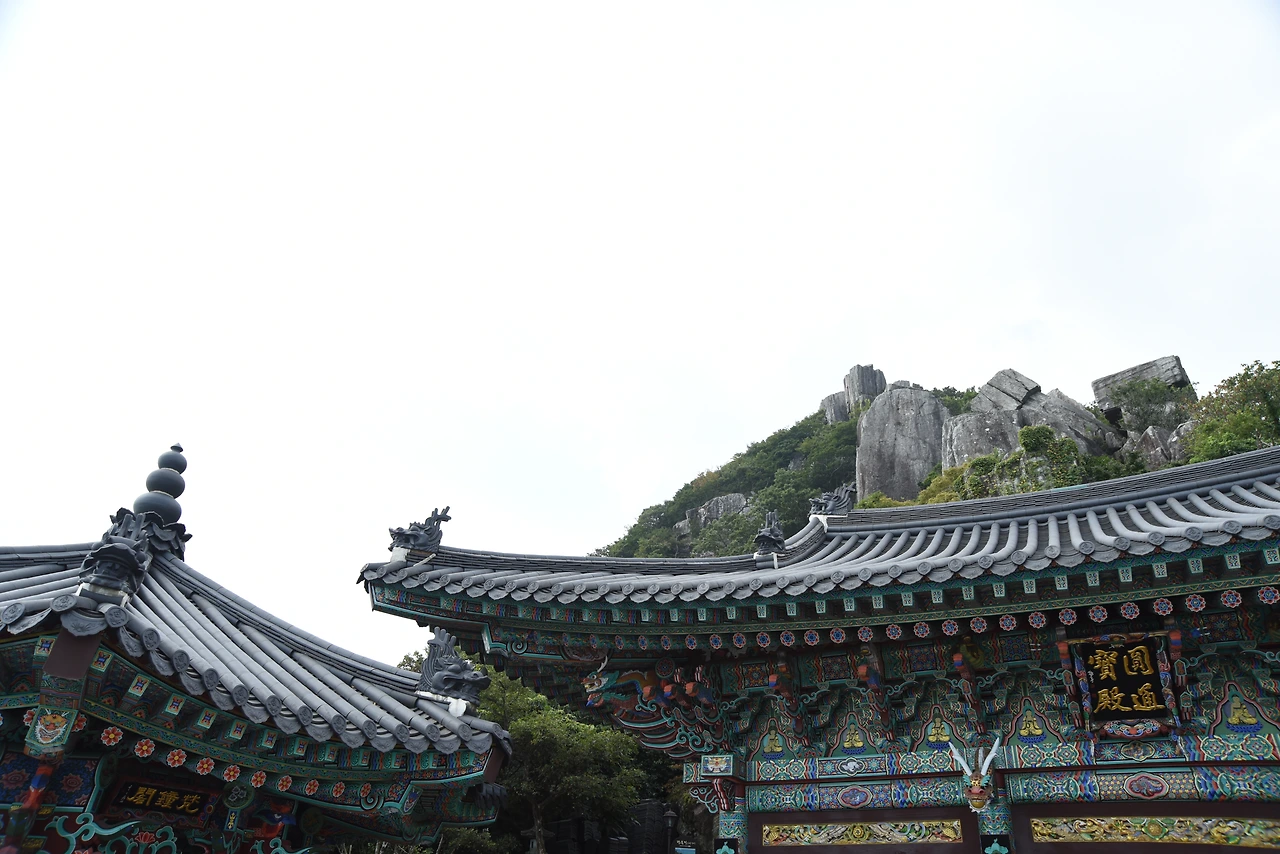 하늘은 노출 오버되면서 하얗게 날아가고 대신 향일암 단청은 고스란히 담겼다.
