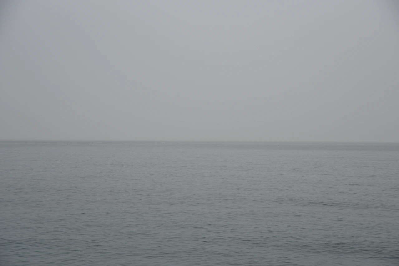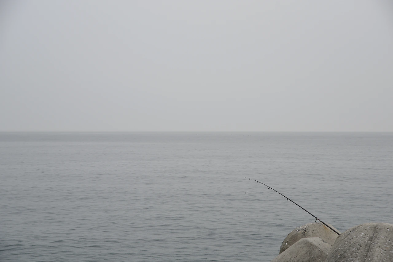 상기 두 사진은 같은 장소에서 찍은 사진이다. 똑같은 바다의 모습을 담은 사진이지만 위의 첫 번째 사진은 무엇을 말하는지 잘 모를 정도로 아무 목적도 없는 빈 공간을 포함하고 있다. 하지만, 아래의 사진에서 보듯이 한 포인트에 빈 낚싯대를 배치 함으로 해서 정적인 바다를 더욱 극단적으로 표현하는 것을 볼 수 있다.