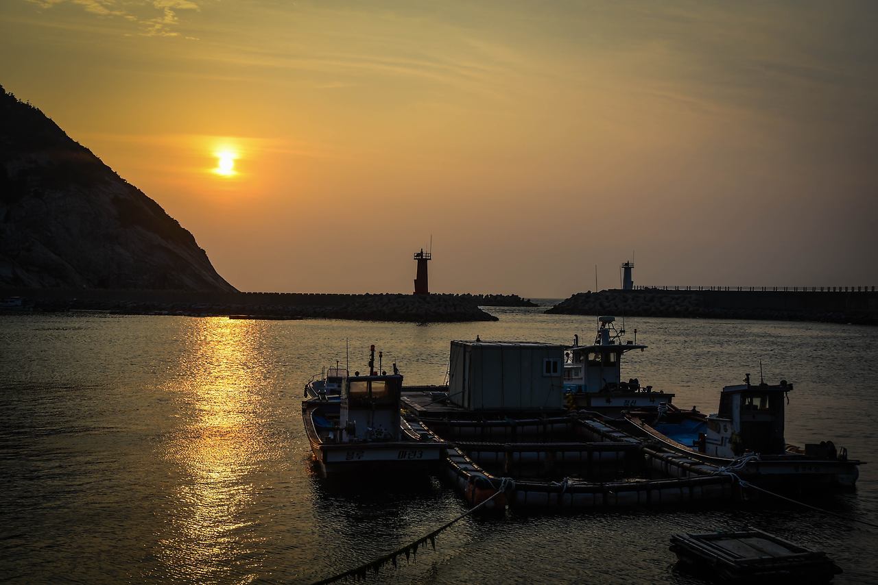 일출과 일몰을 사진으로 담기 좋아라 하는 나 도서는 100% 만족하는 석양은 아니었지만 이곳 여서도의 석양은 참 많이 따뜻한 느낌이더라. 한 편의 이야기가 녹아있는 듯 조용히 떨어지는 태양이 이제 너도 마무리를 하라는 듯 급하지 않지만 서둘러지는 느낌이다. 그렇게 섬의 외곽 길을 돌아 방파제로 다시 돌아오니 바다로 더 떨어진 해는 기가 막힌 오렌지 빛을 내게 선사한다. 마치 반가워 여서도에 온 걸 환영한다 하는 듯 멋진 광경을 선사한다