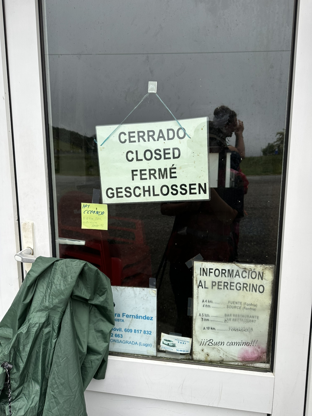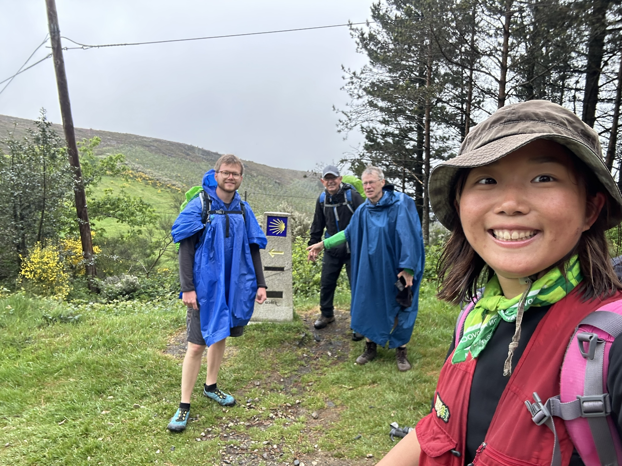 비가 오전 내내 와서 힘든 날이었다. 초반에 작은 슈퍼 한 곳에서 커피를 팔았다. 여태까지 마셨던 커피 중에 제일 맛없는 밍밍한 맛이었다. 그래서 커피다운 커피를 찾아 열심히 다음 마을 다음 마을을 찾았는데 전혀 연 곳이 없더라. 막판에 물 두 병도 이미 다 비워서 갈증이 난 상태로 엄청난 언덕을 올라야 했다. 헥헥 대면서 열심히 피터와 레이요를 따라갔다. 덕분에 걸음을 멈추지 않고 한 번에 오를 수 있었다. 정말 큰 고비였다.