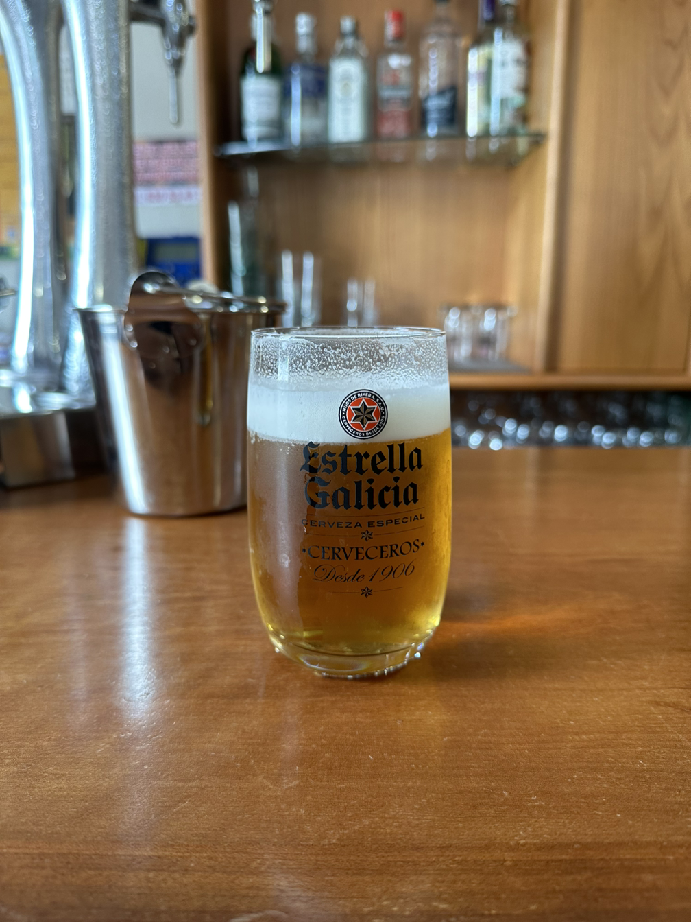 바로 에스테야 갈리시아 생맥주 한 잔을 주문했다. 시원하게 한 잔 마시니 오늘의 고생한 길이 한 번에 잊힌다. 갈리시아 지방에 와서 에스테야 갈리시아를 마시니까 보람차서 좀 더 맛있는 느낌이랄까. 그래 이 맛이지. 숙소 예약하니까 마음이 편해서 멜리데랑 산티아고 숙소를 예약했다.