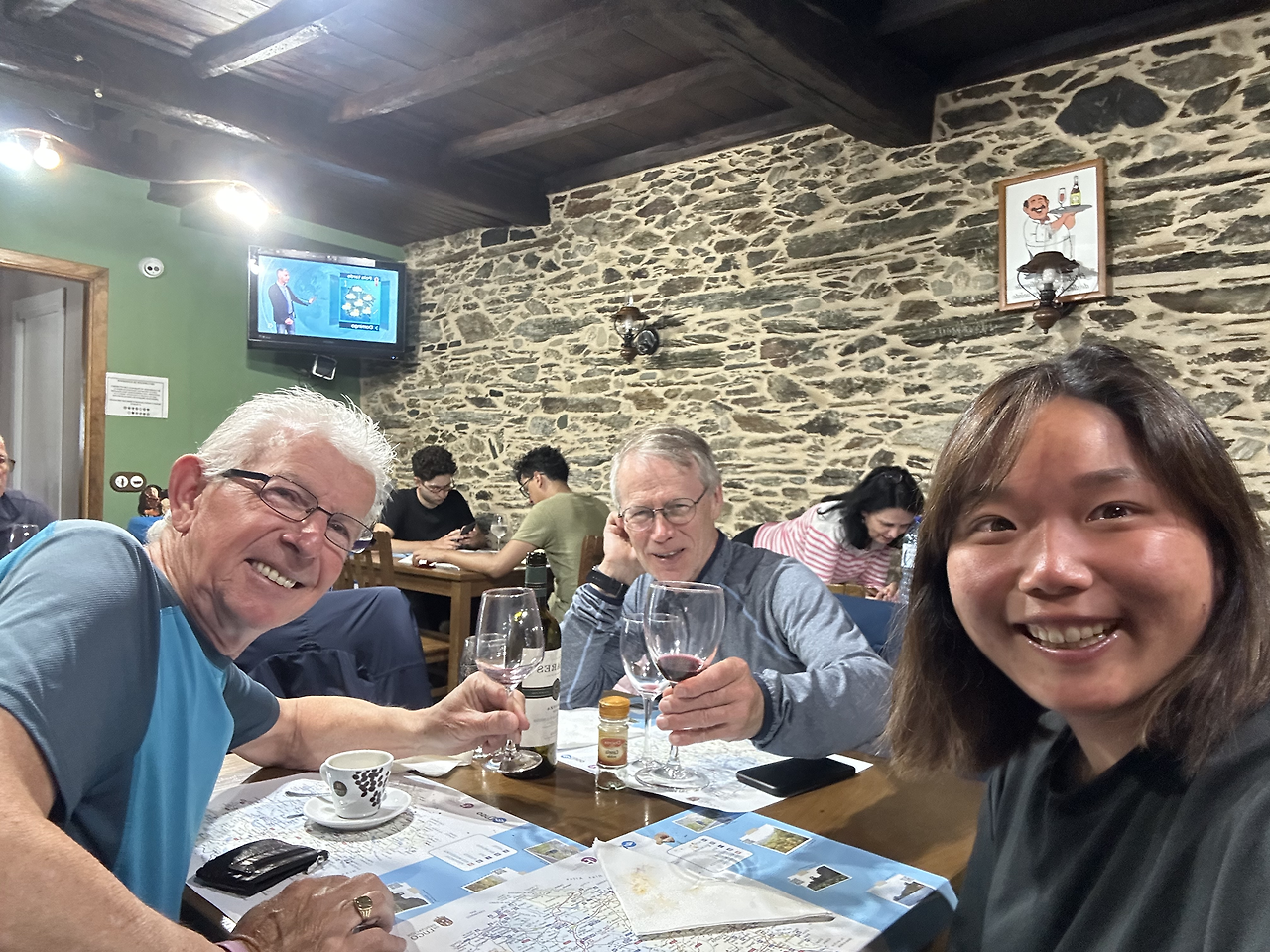 숙소에 도착해서 우린 메뉴델디아를 즐겼다. 매일 먹는 메뉴델디아가 하나의 루틴이 됐다. 하지만 매번 즐거운 이유는 하루종일 열심히 걸었고 하루의 목표를 무사히 끝냈기 때문이니라. 피터가 생일이라고 비싼 와인을 계산했다. 너무 맛있는 와인이었다.