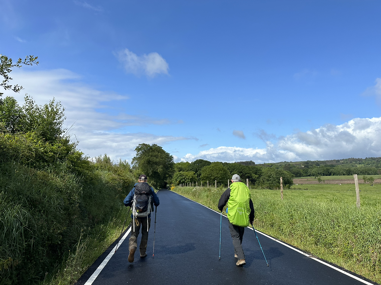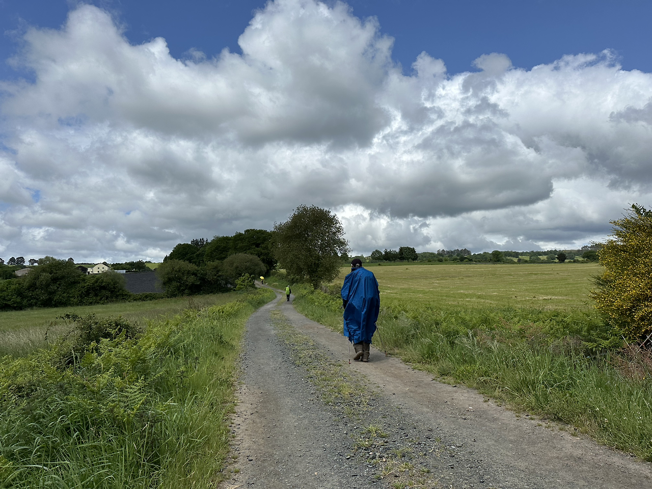 26km 동안 거의 아스팔트 도로라 정신을 못 차렸다. 차가 슝슝 지나갈 때마다 위협을 느꼈다. 이제 오늘만 걸으면 3일 남았다는 생각에 꾸역꾸역 갔다. 중간쯤 갔을까 갑자기 비가 떨어졌다.