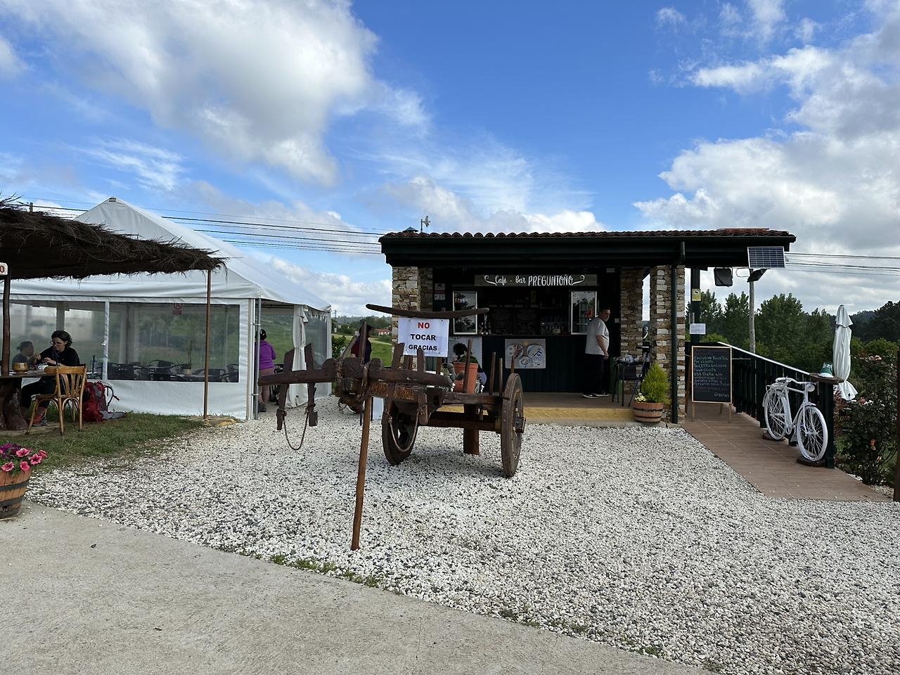 힘을 내서 걸었고 마지막 4km 남은 지점에서 마지막 커피를 마셨다. 생각해 보니 4번이나 멈췄더라. 확실히 프랑스길에 스페인 단체도 있고 순례자도 많았던 탓일까. 길 자체는 평이한데 길이가 길고 사람들이 많아서 그런지 피곤함을 쉽게 느꼈나 보다.