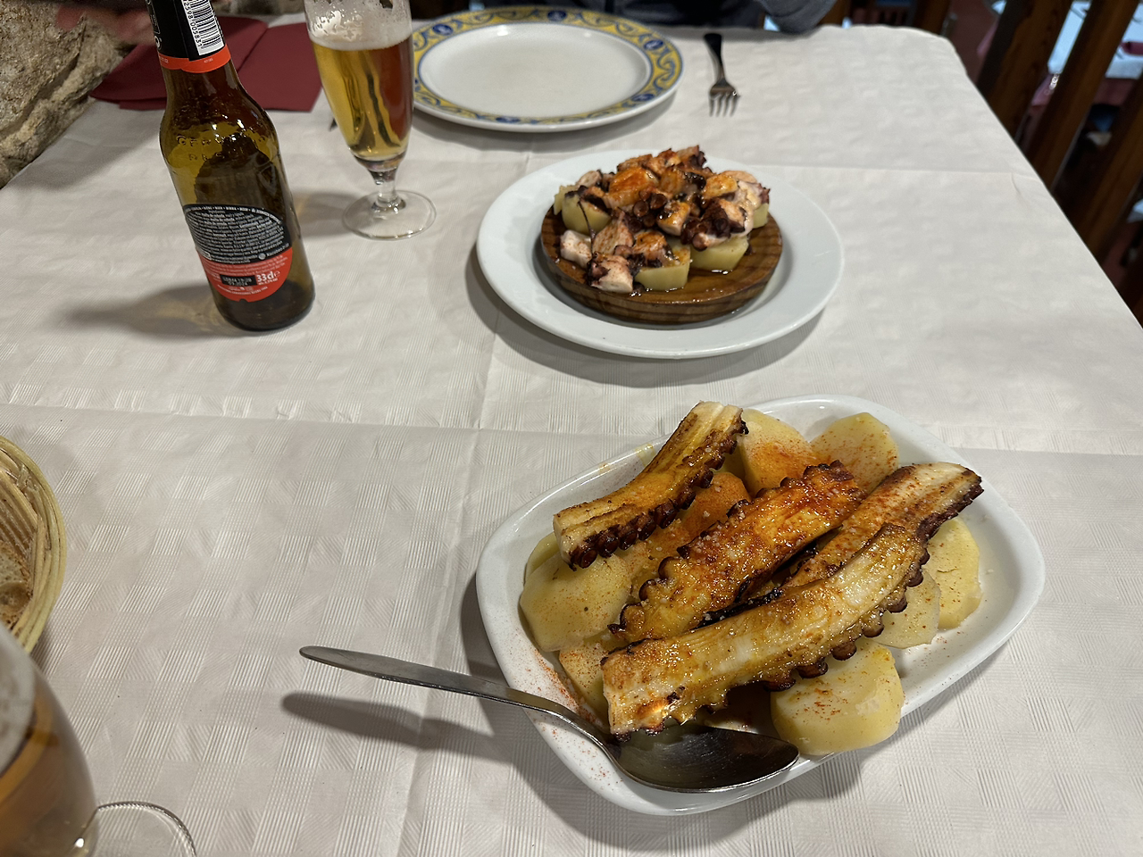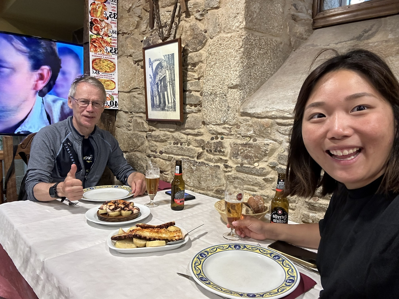 다행히 5등으로 점심 무료식사권을 받았다. 아침은 피터가 묵시아로 오늘 떠나기 전 샌드위치에 커피를 든든하게 사줬다. 저녁은 레이요가 오늘이 마지막 밤이라 문어에 맥주를 사줬다.