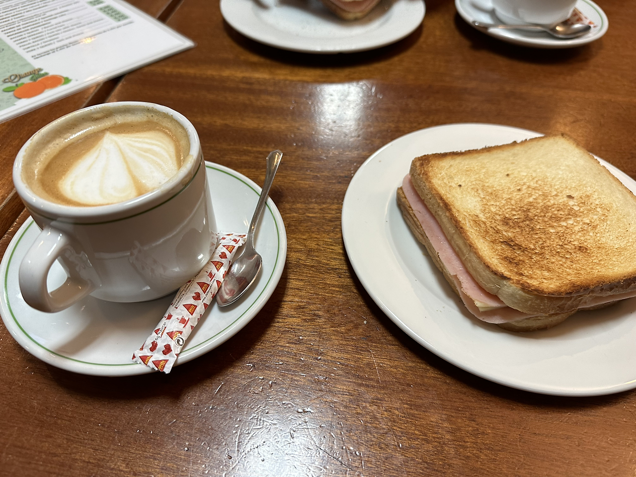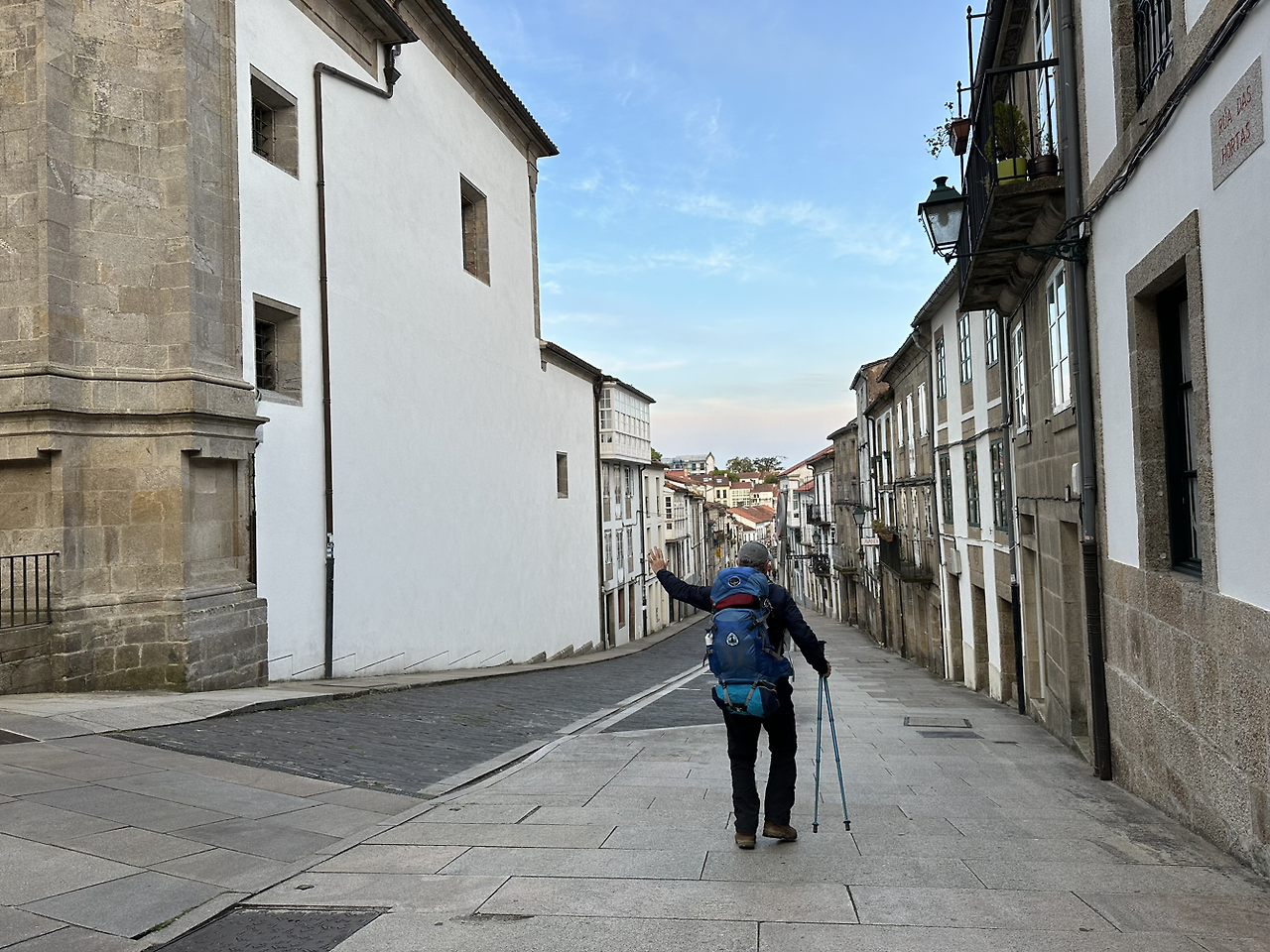 그래서 바로 커피, 오렌지주스, 빵 아침 세트를 먹었다. 빨리 도착하겠다는 욕심을 내려놓으니 다시 힘을 얻었다. 산티아고를 두리번거리며 슬렁슬렁 걸어 들어갔다.