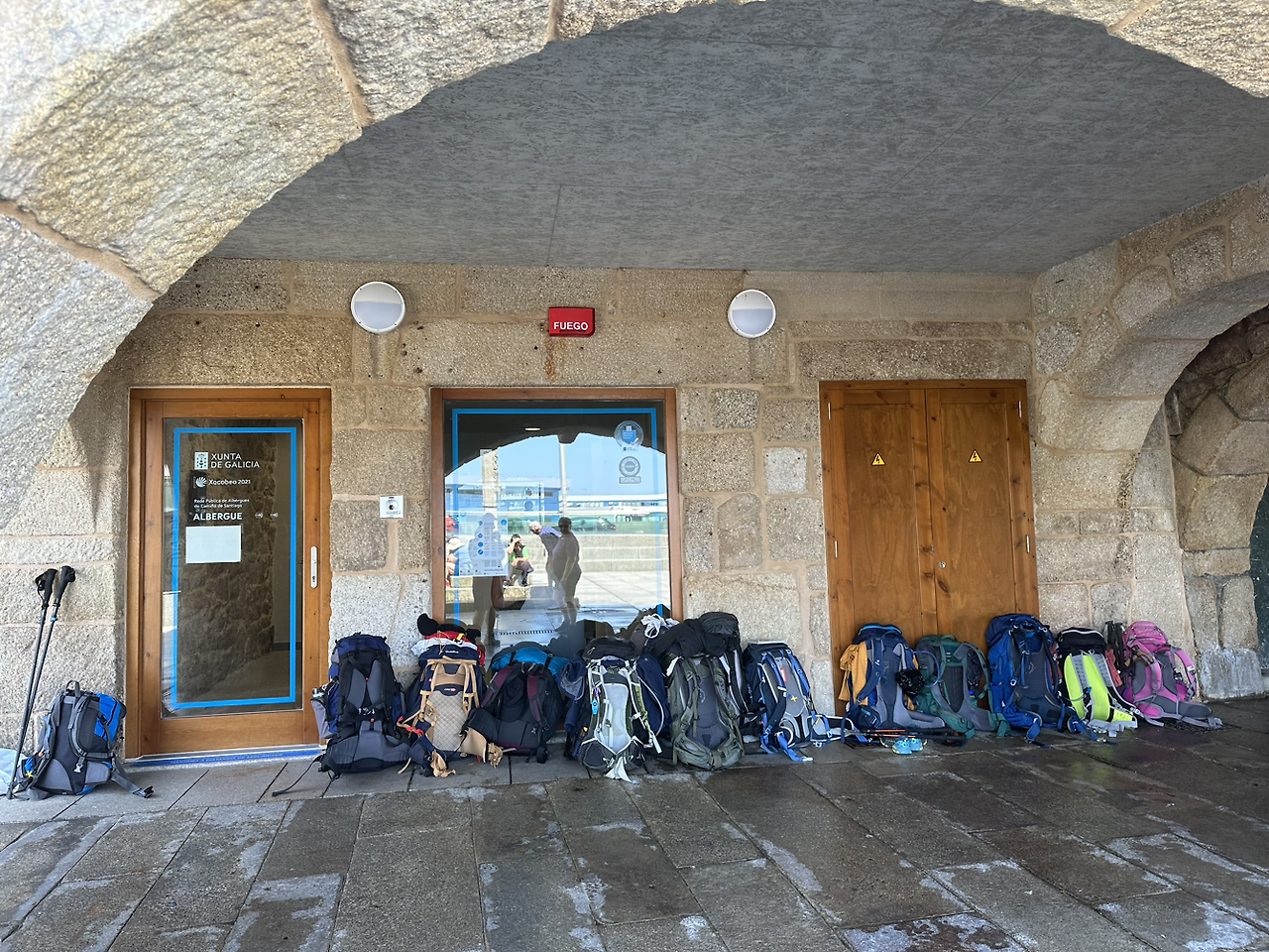 일찍 도착한 여유를 만끽하다가 숙소 오픈 1시가 되기 10분 전에 맞춰 도착했는데 이미 순례자의 배낭 줄로 가득했다. 포르투갈길의 인기를 매일 실감하는 순간이다. 숙소에 자리가 없으면 어쩌지라는 불안감을 이 길에선 느끼지 않을 줄 알았는데. 배낭대기줄은 처음 겪어본다. 다행히 숙소 자리는 넉넉했다.