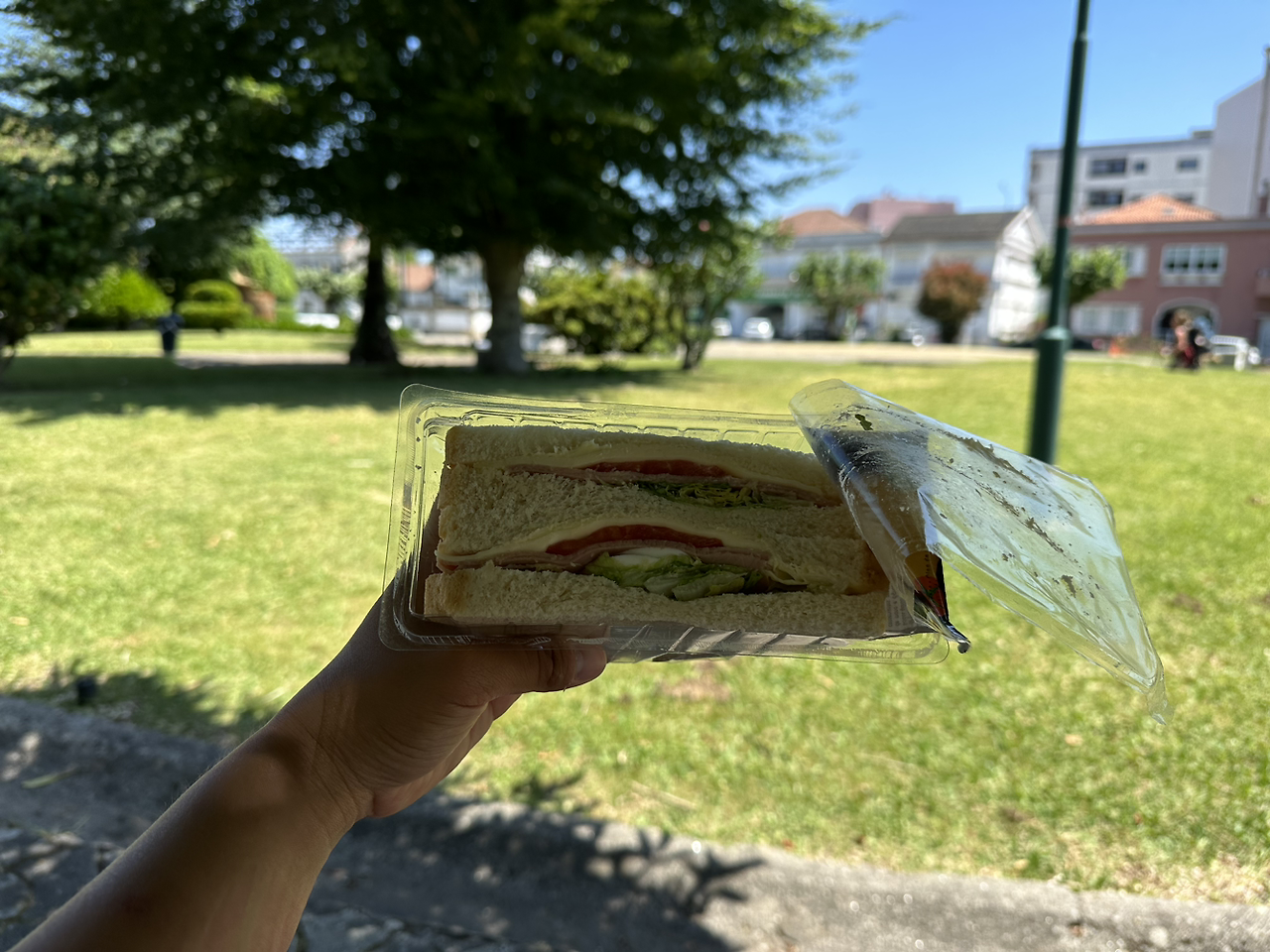 사실 배가 고플 땐 쇼핑을 하면 안 된다. 부족함이 가득한 상태여서 뭐든 넘치게 사기 때문이다. 그래서 샌드위치도 사고 복숭아도 1kg나 사고 에그타르트도 2개나 오렌지주스도 1리터를 샀다. 쇼핑을 마치고 근처 공원을 찾았다.