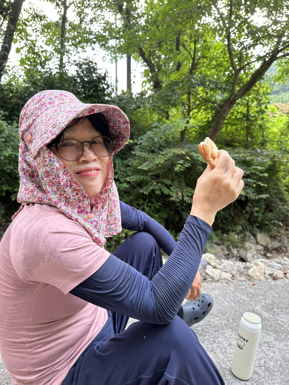 걷다가 태국 치앙마이에서 온 부부를 만났다. 엄마가 지난번에 걷다가 짐이 많아서 우연히 아저씨 차를 얻어 탔다고 한다. 아저씨는 한국에서 농사일한 지 5년이 넘으셔서 한국말을 잘하신다. 아주머니는 온 지 얼마 안 되어서 아직 단어 몇 개로만 소통이 가능하다. 한국에서 일한 덕분에 태국에 집을 사셨다고 한다. 중고등학생이 된 자식들은 할머니가 태국에서 키워주고 계신다고.