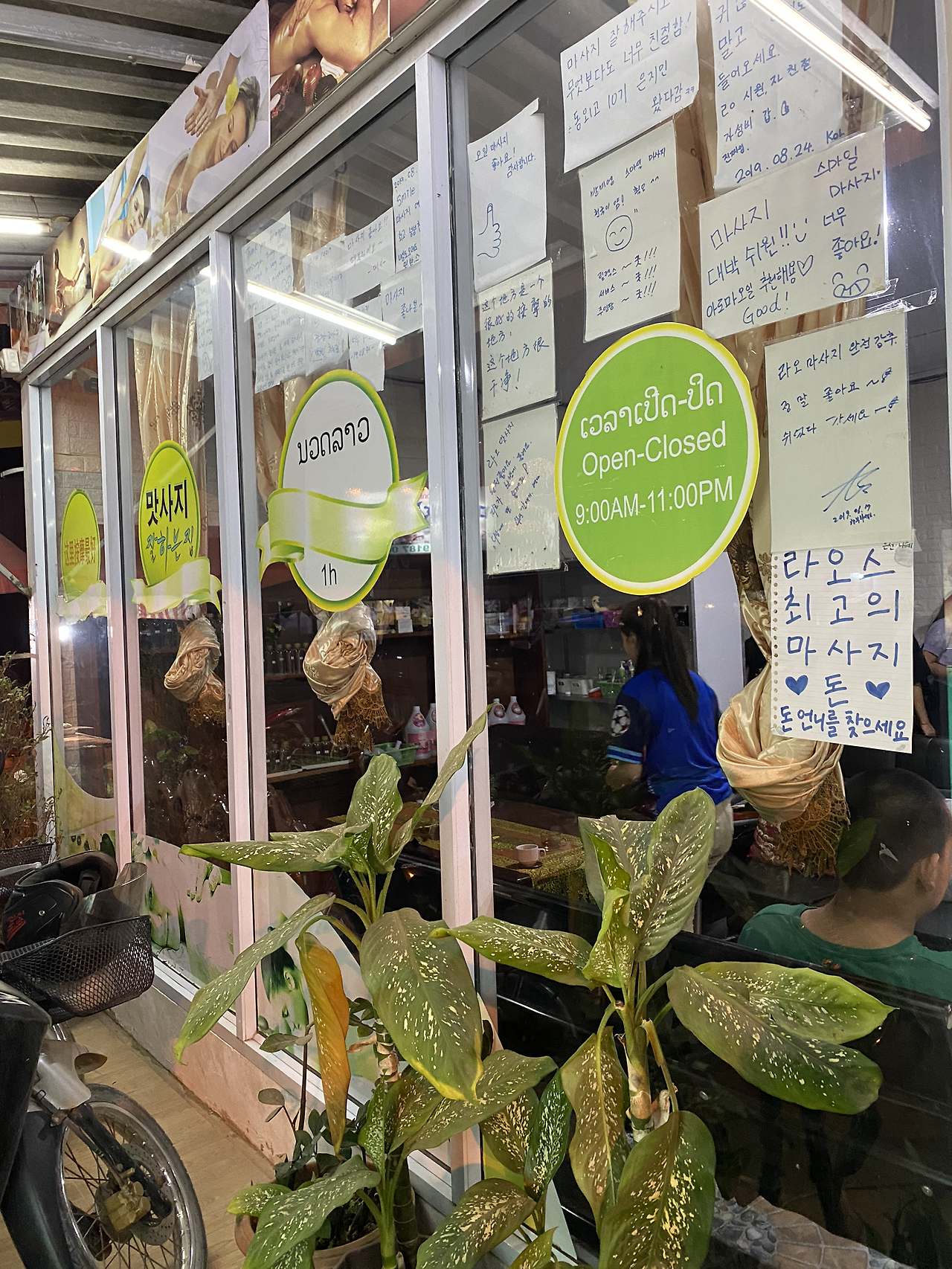 혹시 여기 한국인가요? 착각하게 만들 정도로 한국어가 통째로 쓰인 간판을 만나면 사장님의 정성이 대단해서 감탄이 나온다. 한국인이 선호하는 집. 마사지 여기가 좋겠네! 실제로 그런지는 알 수 없지만, 모객멘트마저 구수하니 몸이 끌려서 가게 되는 것이다.