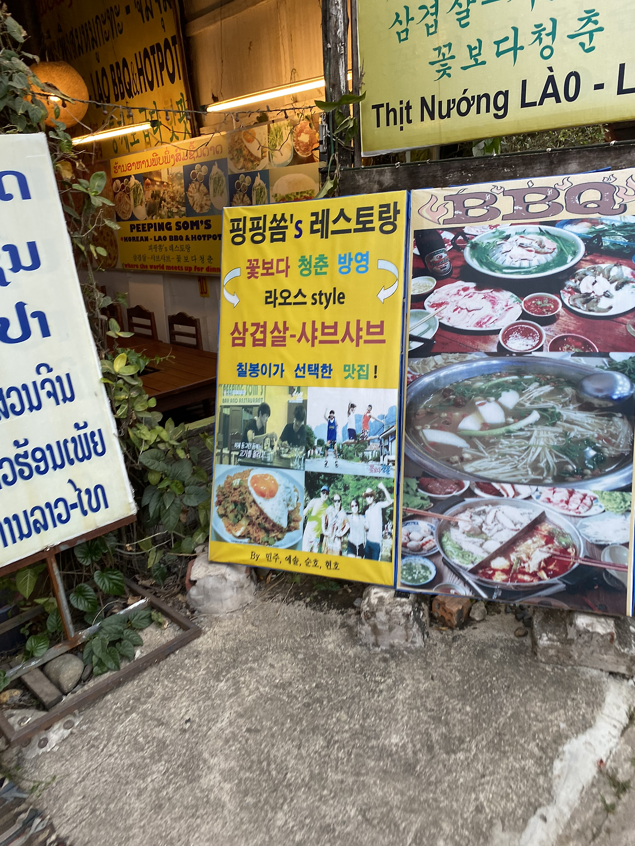 해외 가면 영어로 의사소통하는 데 에너지를 쏟느라 지친 적이 있는가. 한국인 사장님은 싸바이디, 컵짜이 2개의 라오스어 밖에 모르는 초보 배낭여행객에게 가뭄의 단비 같은 존재다. 영어는 안 써져 있는데 한국어로는 적혀있는 입간판이 많다. 그럴 때마다 한국인으로서 가슴이 웅장해진다.