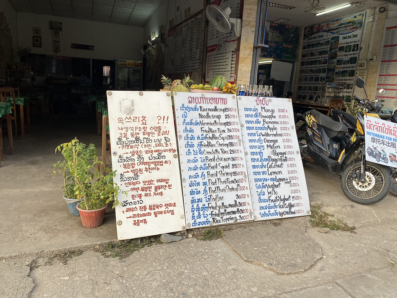 한 달 넘게 타지에 있다 보니 자연스럽게 한식이 당긴다. 한국에서는 피자, 햄버거, 치킨으로 돌아가면서 참 먹었는데 말이다. 사람이 참 간사한 게 쉽게 먹을 수 없는 환경에 처하니까 평소에 잘 찾지 않는 음식도 간절히 원하게 된다. 그래서 오늘 점심은 한식을 먹을 수 있는 식당에 왔다. 라오스인 부부가 운영하시는 곳이다.