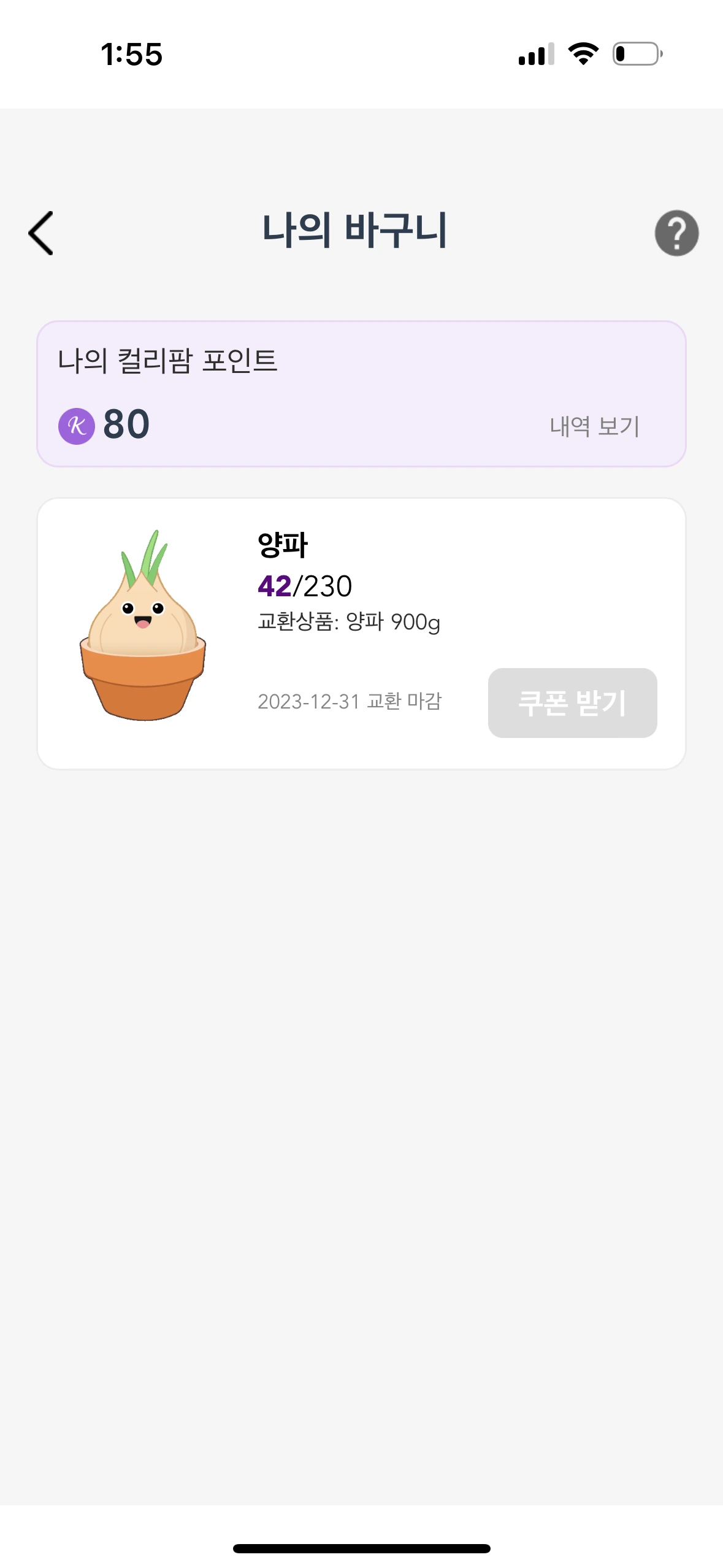 사실 이런 온라인 농사짓기의 원조는 공동구매 앱 올웨이즈의 올팜이다. 올팜을 친구가 공유해 줬을 때도 온라인 농사짓기에 대한 호기심은 생겼지만 앱 설치까지는 이어지지 않았다. 공동구매의 매력을 잘 모르다 보니 올웨이즈의 존재를 알아도 굳이 쓰지 않게 되더라. 그동안 마켓컬리 앱도 설치는 했지만 사용한 적은 없었다. 꼭 1만 원 이상을 주문해야 100원짜리 상품을 살 수 있어서 구매까지 이어지지 않았다. 배보다 배꼽이 큰 느낌이랄까.