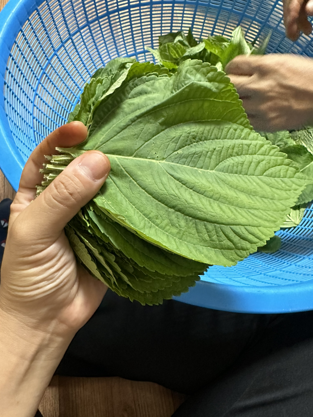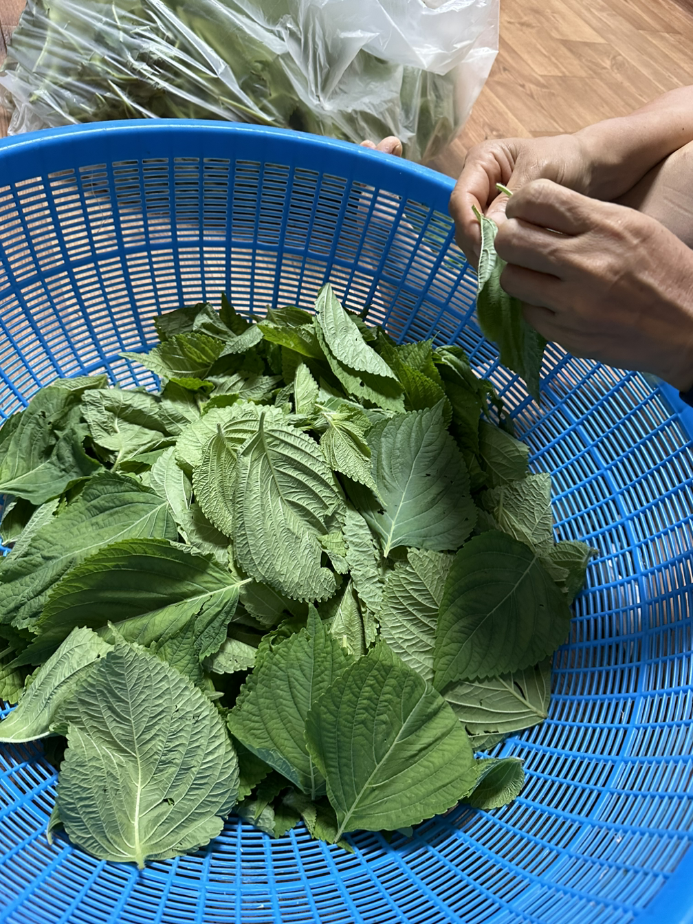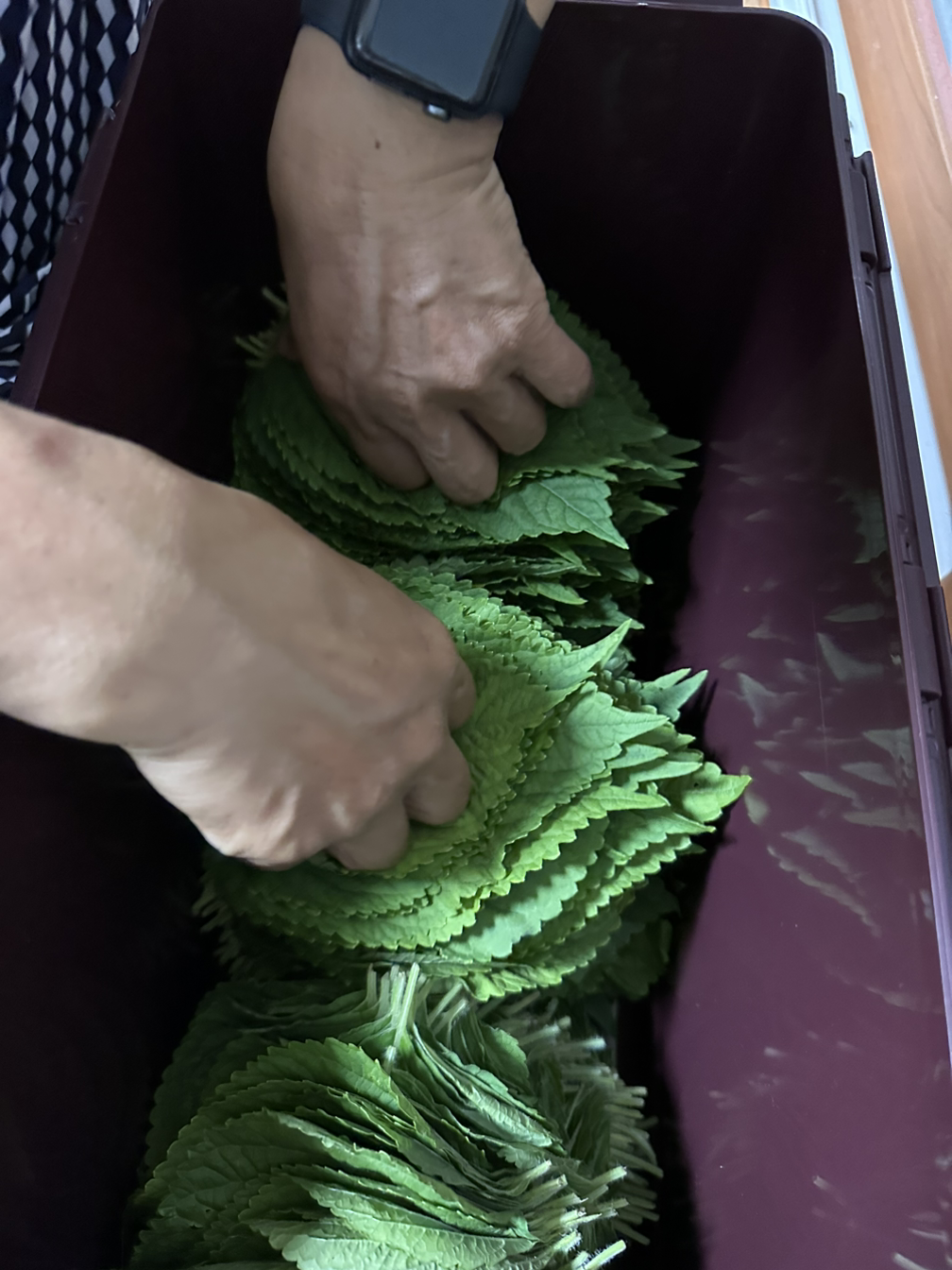 깻잎을 다듬다 보니 손에 빨갛게 물이 들었다. 봉숭아만 손에 물드는 줄 알았는데, 깻잎에도 물들 수 있구나 신기했다. 어렸을 때 할머니랑 열심히 봉숭아 물들이던 추억도 떠올랐다. 시골에서는 봉숭아 물들이는 어른들이 여전히 있다. 정희이모네 회사엔 아저씨들이 먼저 손발에 봉숭아를 물들여오셔서 자랑하신다고 한다. 남자들이 봉숭아 물들이기에 진심이신 걸 보니 제법 귀엽게 느껴졌다.