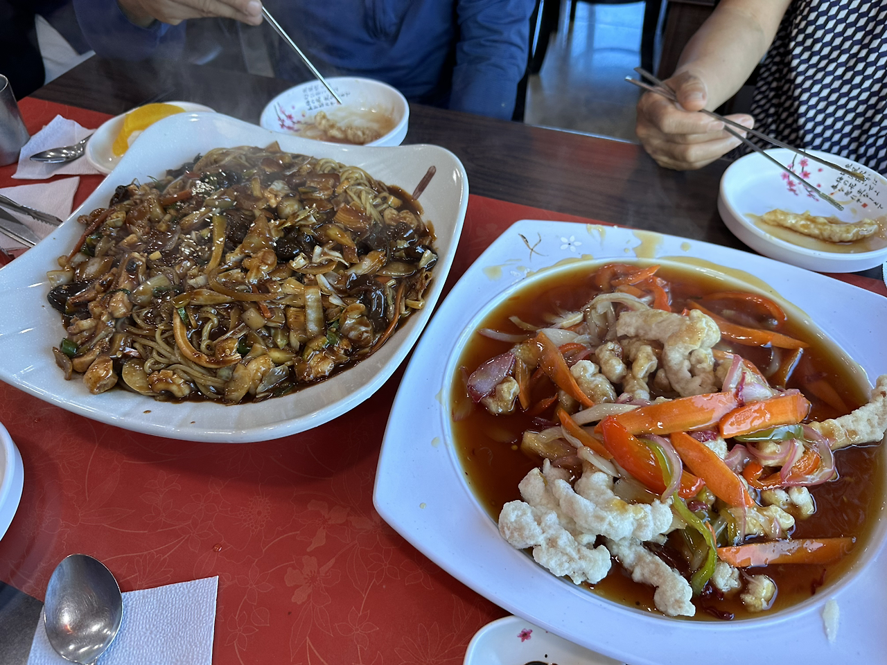 오후 5시가 넘어서야 아빠, 엄마, 나, 동생 네 명이 식당으로 향했다. 쟁반짜장과 탕수육 대자를 주문했다. 아무도 생일은 아니었지만, 누군가의 생일 같은 푸짐한 식사였다.