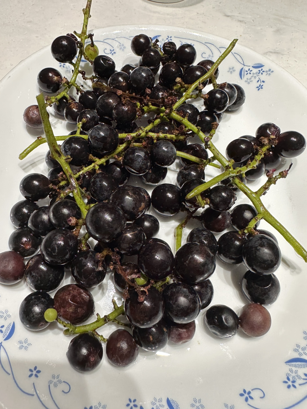 *집 앞마당에 탐스럽게 연 포도를 따먹었다. 시중에서 파는 포도보다 알이 작지만 더 달다. 수박도 따먹고. 참외도 따먹고. 과일을 사지 않고 키워먹는 기분. 세상 즐겁다.